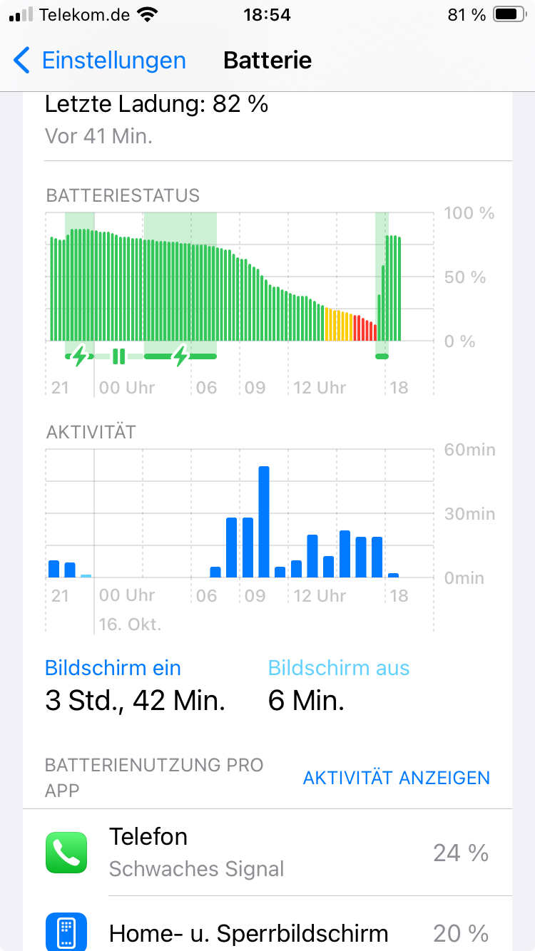 Mein Studium der Eletrotechnik ist zwar schon etwas länger her (1980-1984) und ich kenne den schnellen Akkutot bei Bleibatterien, wenn der Bleischlamm die Platten berührt. Aber so ein eklatanter Zusammenhang zwischen IOS Update und Verschlechterung in der Akkulaufzeit ist schon heftig.