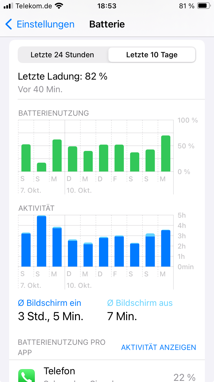 Also erstmal hat mein Akku noch eine Kapazität von 76% nicht 73, also nahe an 80.