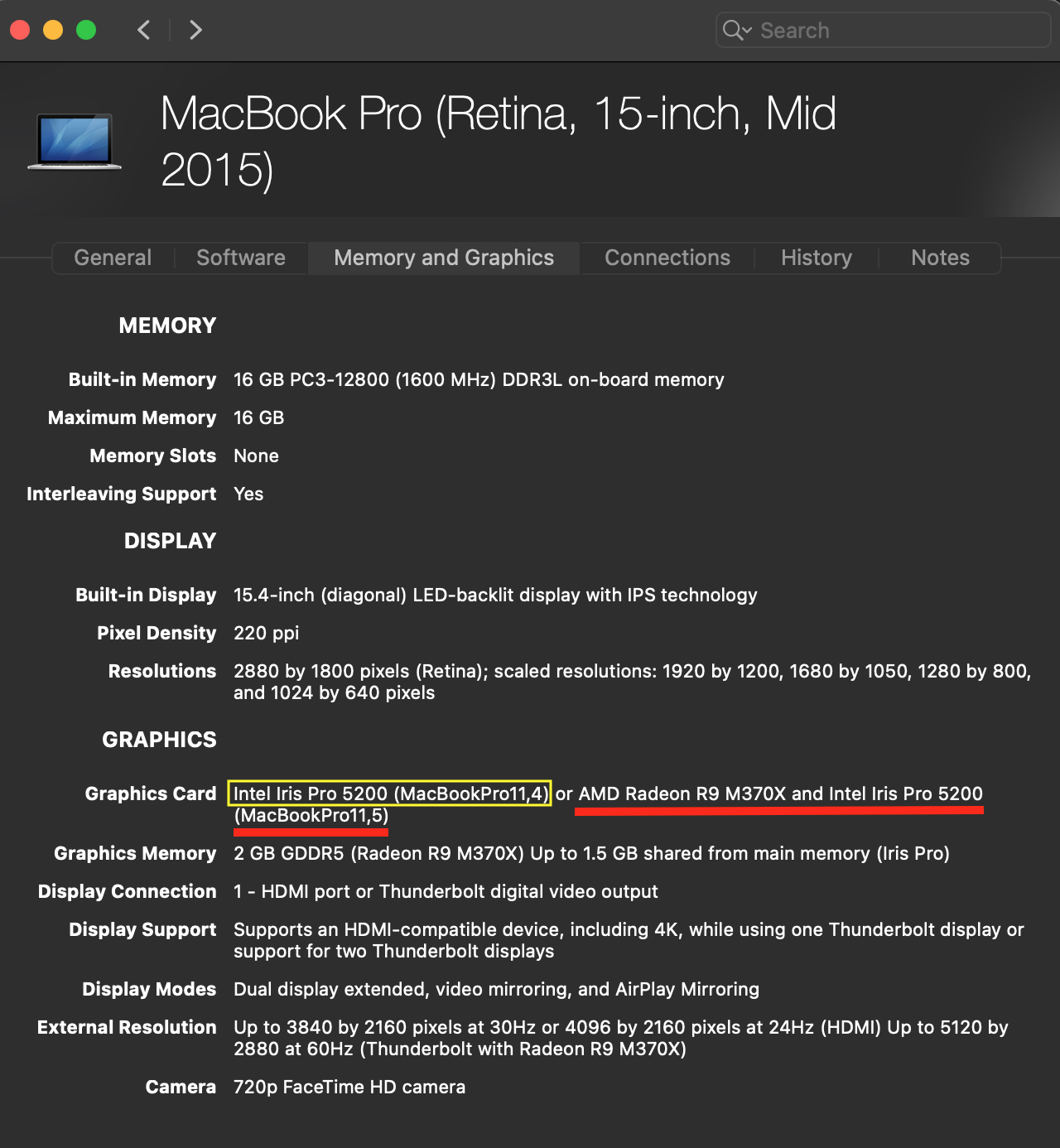 das 2015er MB Pro11,5 hat neben der AMD eine zweite Grafikkarte Intel Iris Pro