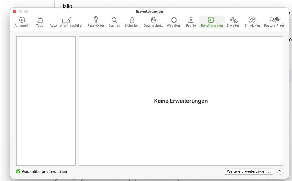 Ich habe mir in der Zwischenzeit Safari Technology Preview installiert. Dort lief (erstmal) alles wie mit dem normalen Safari, also Synchronisation mit dem iPhone, Tab Gruppen, Add Ons usw. Nach ein paar Tagen habe ich mich dann aber auch gegen die Preview entschieden, da diese Version einfach zu oft instabil gelaufen ist.