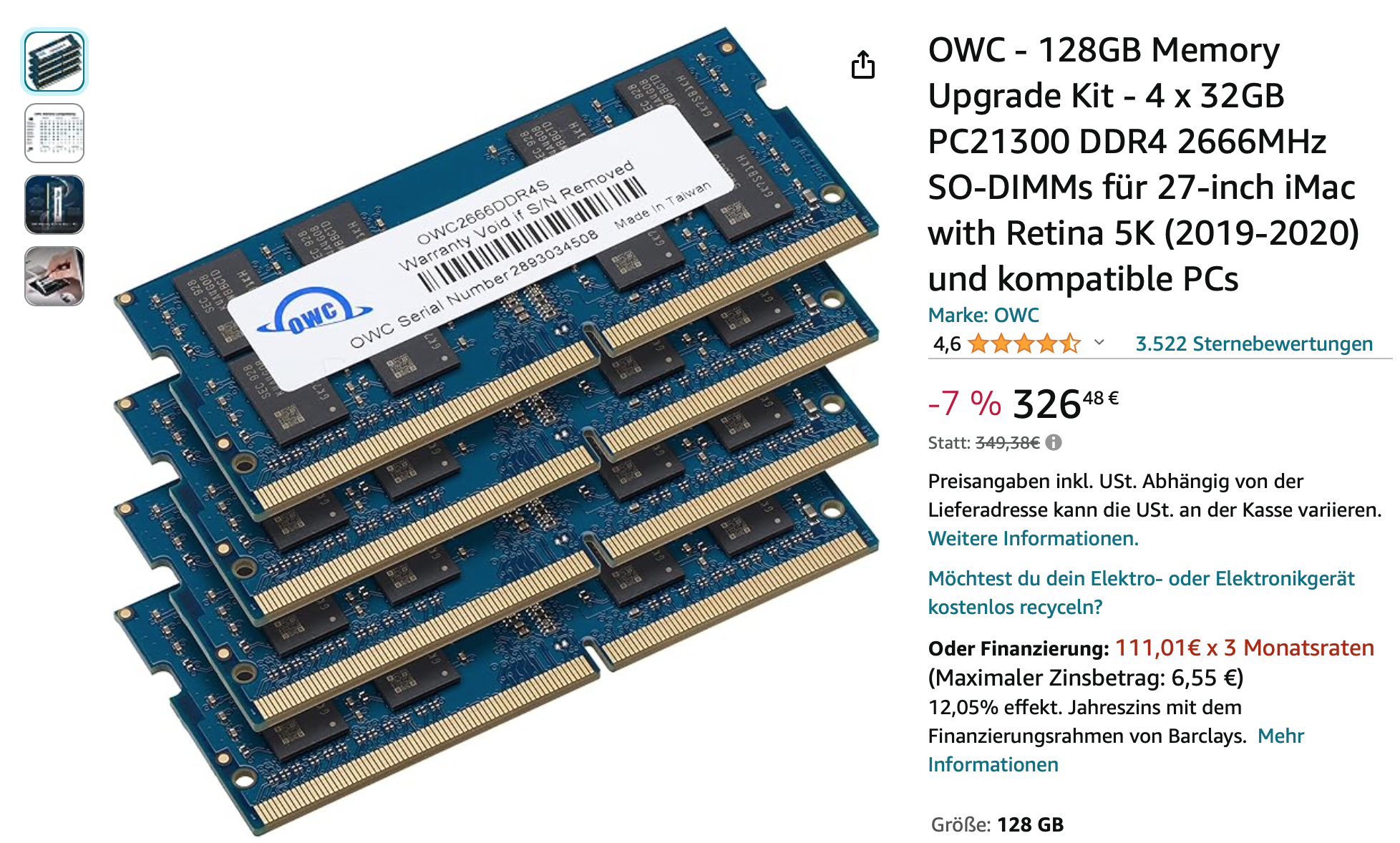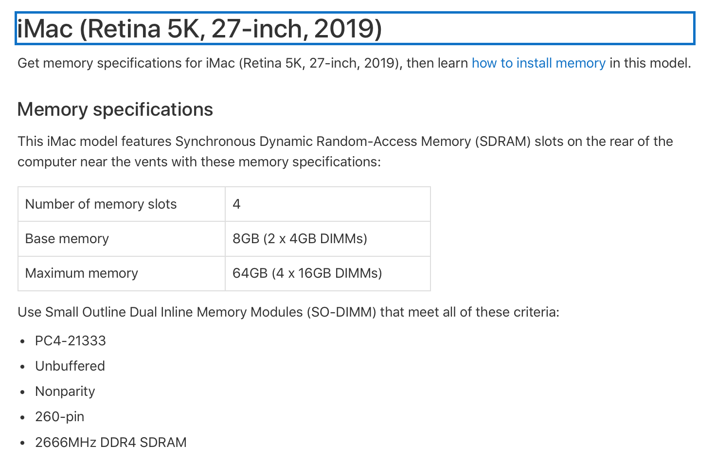 Maximaler RAM iMac Retina 5K, 27 Zoll, 2019