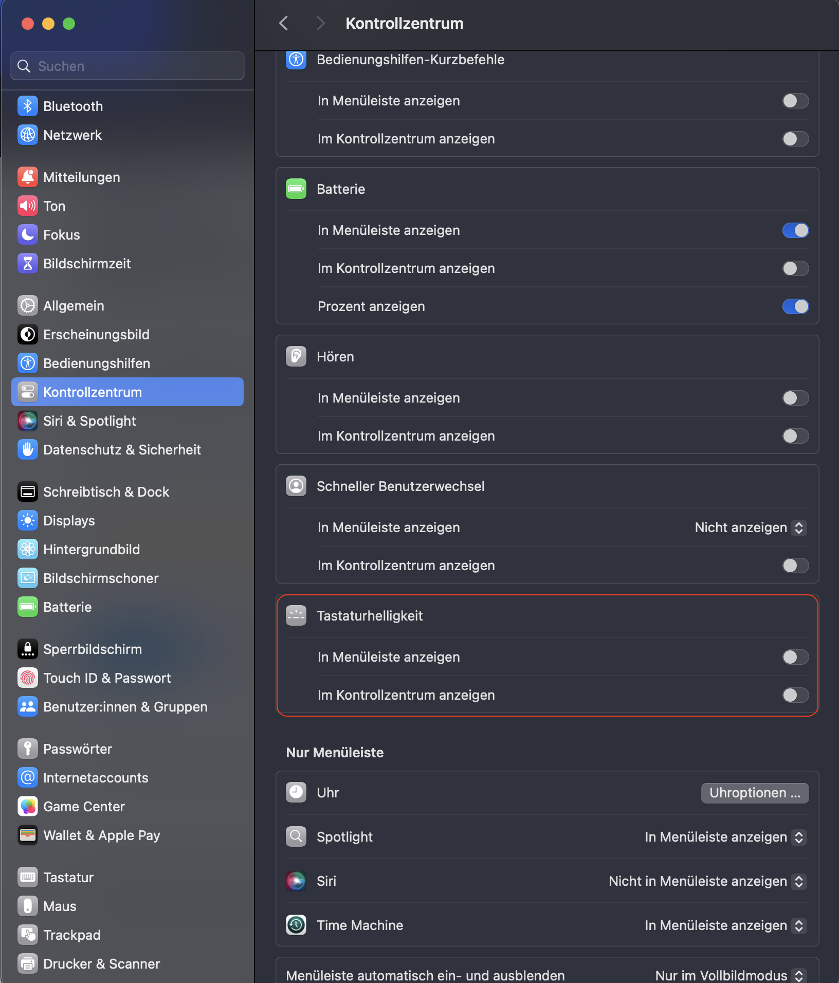 Symbol mit Aufschrift "Tastaturhelligkeit" kann nicht gelöscht werden