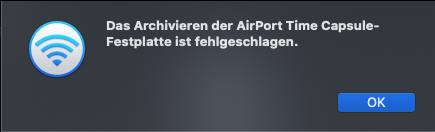 Meldung "Internes Laufwerk muss repariert werden" bei der Time Capsule