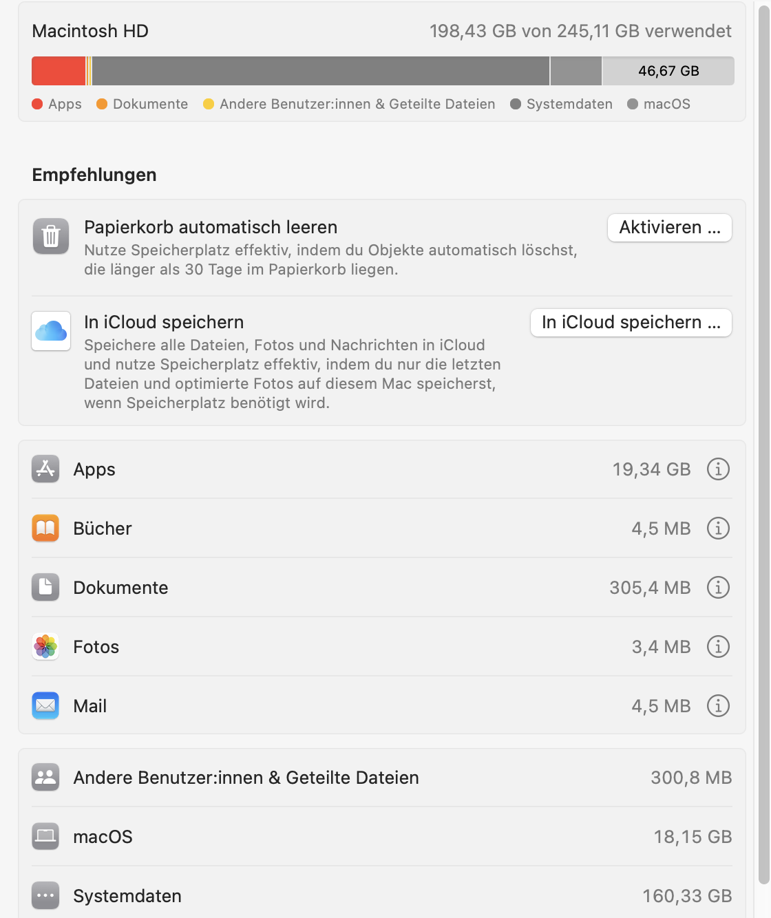 MacBook Air M2 nach 10 Monaten die Platte voll mit 175 GB Systemdaten