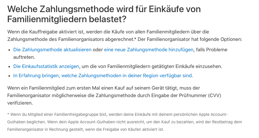 Eigene Zahlungsmethode in Familie hinzufügen geht nicht