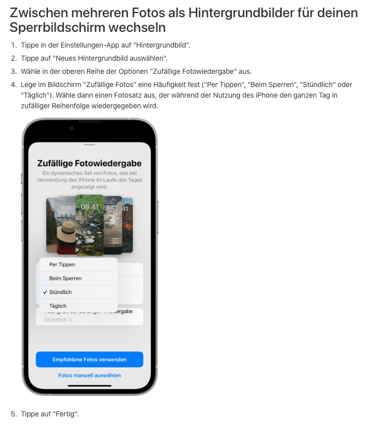 Ich möchte mit der App Kurzbefehle in regelmäßigen Abständen mein Hintergrundbild ändern. Ich habe hierfür mehrere Automationen festgelegt, die zu bestimmten Tageszeitpunkten (zum Beispiel 13:00 Uhr) das Hintergrundbild ersetzen sollen. Der Aufbau hierbei ist auch recht übersichtlich: erst kommt eine Activity, um ein Bild herauszusuchen und danach eine activity und das Bild als Hintergrundbild zu setzen. Wenn ich das Ganze so ausführe, funktioniert es meistens. Auch die Automation funktioniert manchmal, aber es ist völlig willkürlich, ob die Automation erfolgreich durchläuft, oder ob sie auf einen Fehler läuft und das Bild dementsprechend nicht ersetzt wird. Ich habe verschiedene Automation zu unterschiedlichen Tageszeitpunkten angelegt, mit unterschiedlichen Bildern aus unterschiedlichen Alben und es steckt für mich absolut kein System dahinter, wann ein Fehler auftritt und wann nicht. Die Activities sind immer die selben, die Alben bestehen immer nur aus einem Bild. Ist jemand hier das Problem bekannt?