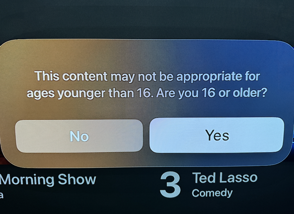 weiß jemand wie man dieses überflüssge Pop-Up abstellen kann? Ich möchte nicht jedes mal mit so einer, in meiner Situation völligst überflüssigen Frage konfrontiert werden. Alle Altersbeschränkungen sind im Apple TV deaktiviert. Das Pop-Up kommt bei TV Plus. Eine Sinnhaftigkeit erschließt sich mir nicht, falls ich Kinder im Haus hätte, hätte ich den JuSchu aktiviert. Das ist also reine Wegklickarbeit, ich wüsste nicht wieso ich hier etwas anders als "Yes" wählen sollte...:)