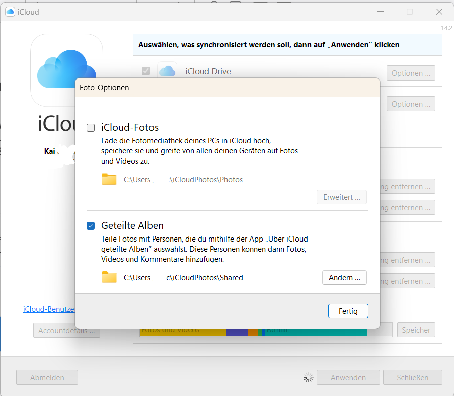 Geteilte Alben verschwinden auf Windows Rechner nach Neustart
