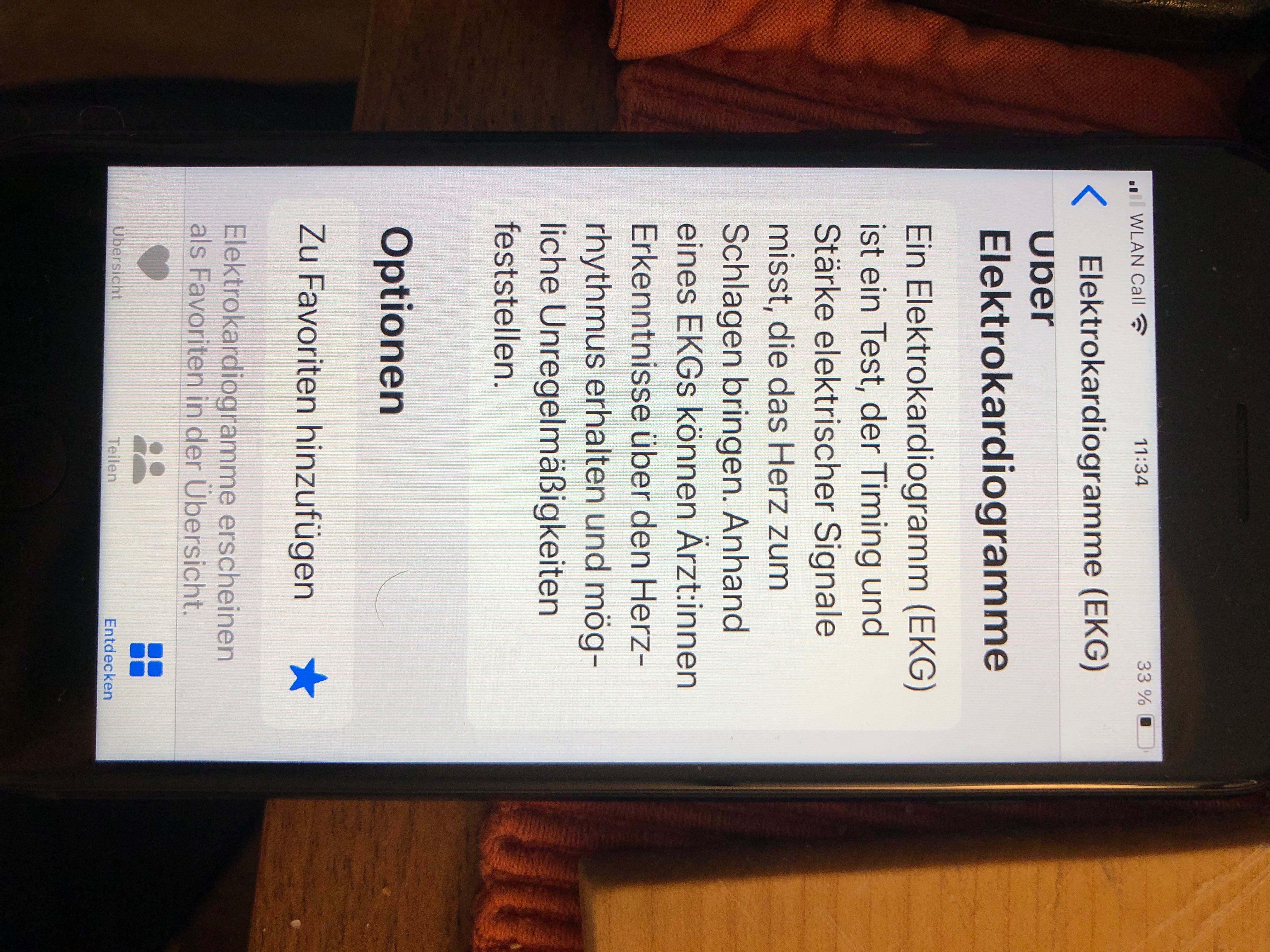 Hallo, ich versucht für meine Mutter in der Health App die EKG App zu installieren. Aber nirgendwo steht „hier installieren“ oder überhaupt die Möglichkeit dass man die App installiert. Bei in Health > Entdecken > Herz > Elektrodiagramm (EKG). Eigentlich müsste dann (laut Beschreibung) „App installieren“ irgendwo stehen, tut es aber nicht.