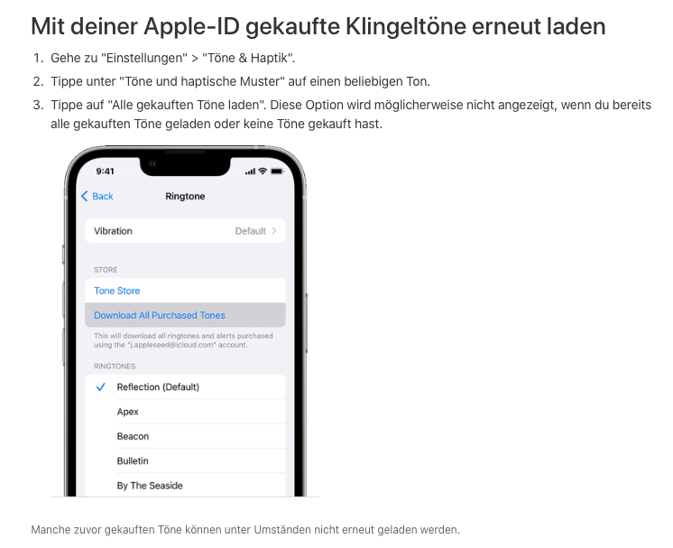 Schau dir danach einmal folgenden Apple-Support-Artikel an: Hinweis- und Klingeltöne auf dem iPhone oder iPad verwenden - Apple Support (DE)