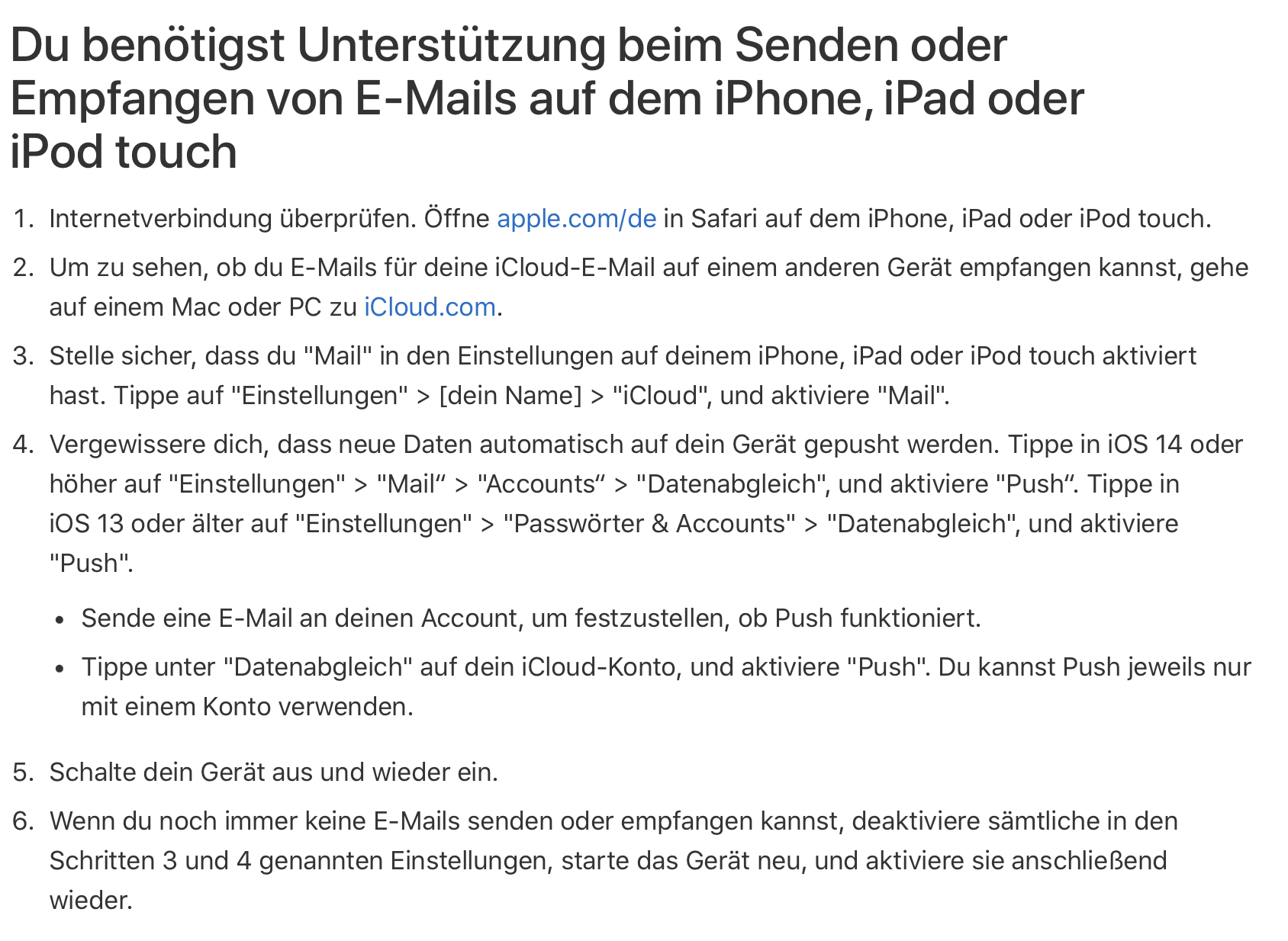 Stelle sicher, dass du allen Schritten aus dem Apple-Support-Artikel, über den du zu uns gekommen bist, gefolgt bist.