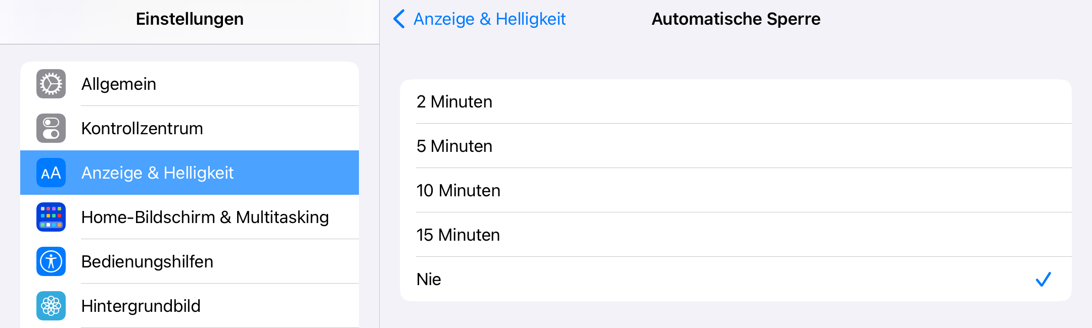 Ausschalten des Displays beim iPad verhindern, wenn bestimmte App geöffnet ist