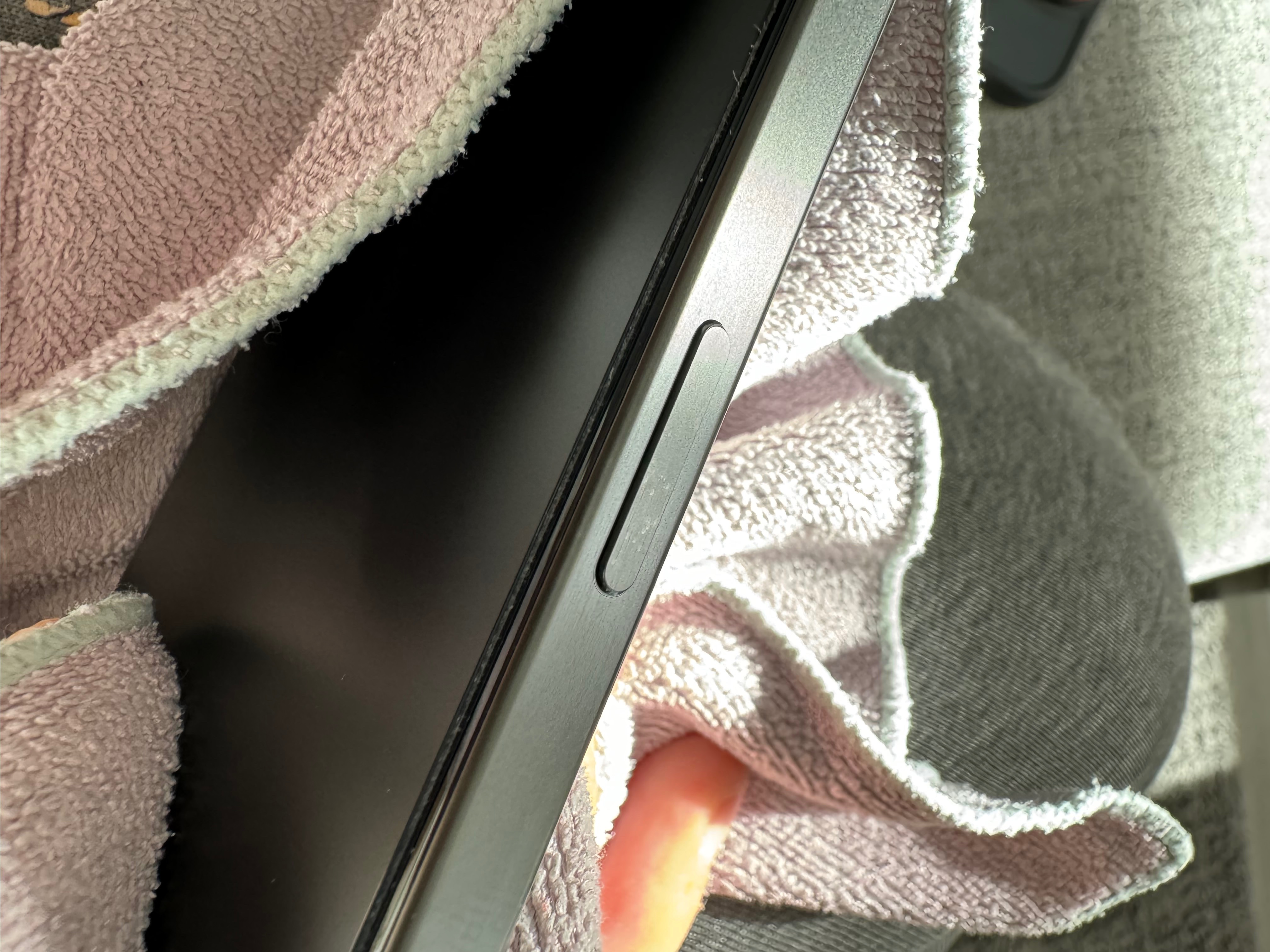 Ich habe mein IPhone 15 Pro jetzt seit knapp über einem Monat (also seit offiziellem Release). Das Handy bekam direkt ein Panzerglas und eine Schutzhülle. Als ich es gestern aus der Hülle genommen habe um es zu reinigen, sind mir komische kleine Punkte bzw. Flecken an dem Ein/Aus Schalter aufgefallen, mit dem Finger nicht spürbar und mit dem Lappen auch nicht wegzuwischen.
