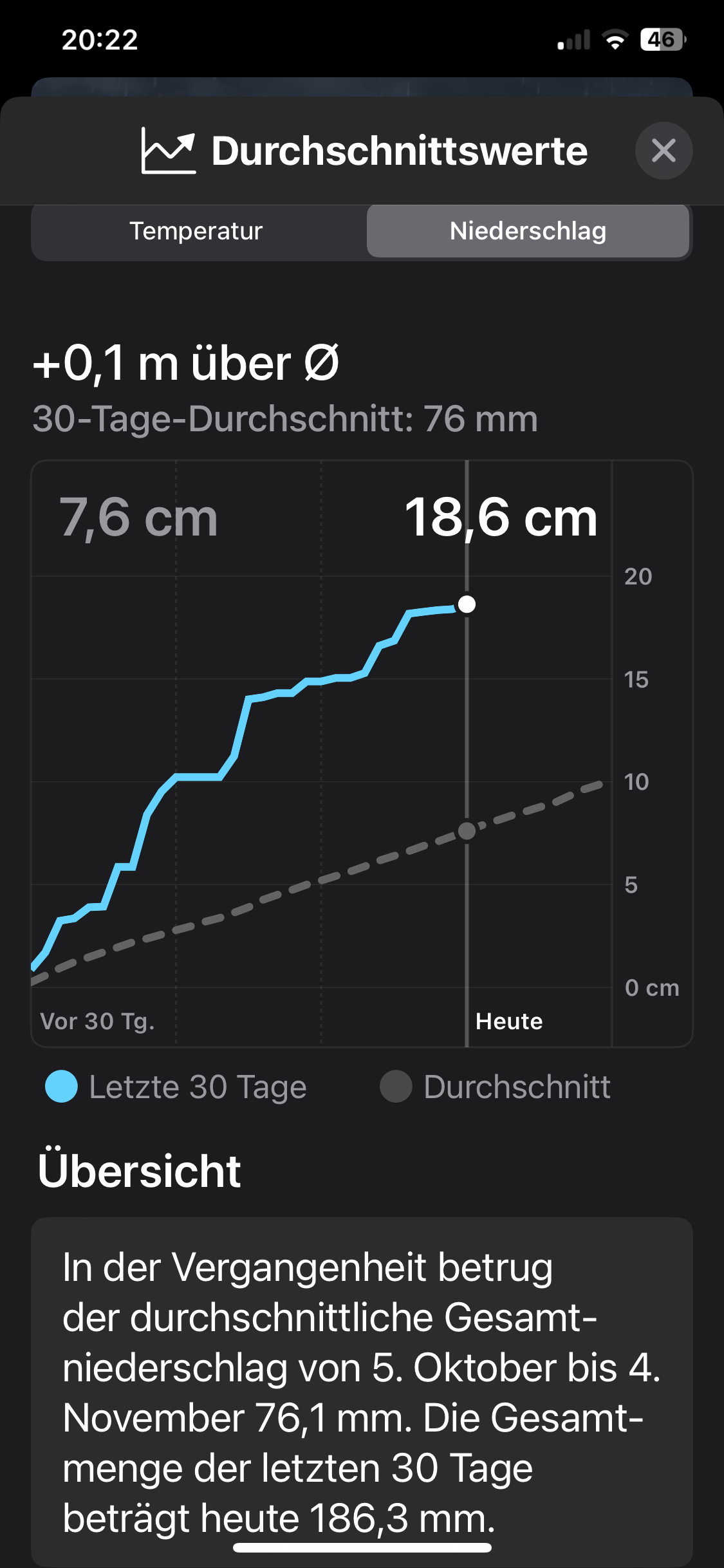 „Die Gesamtmenge der letzten 30 Tage beträgt heute 186,3 mm.“