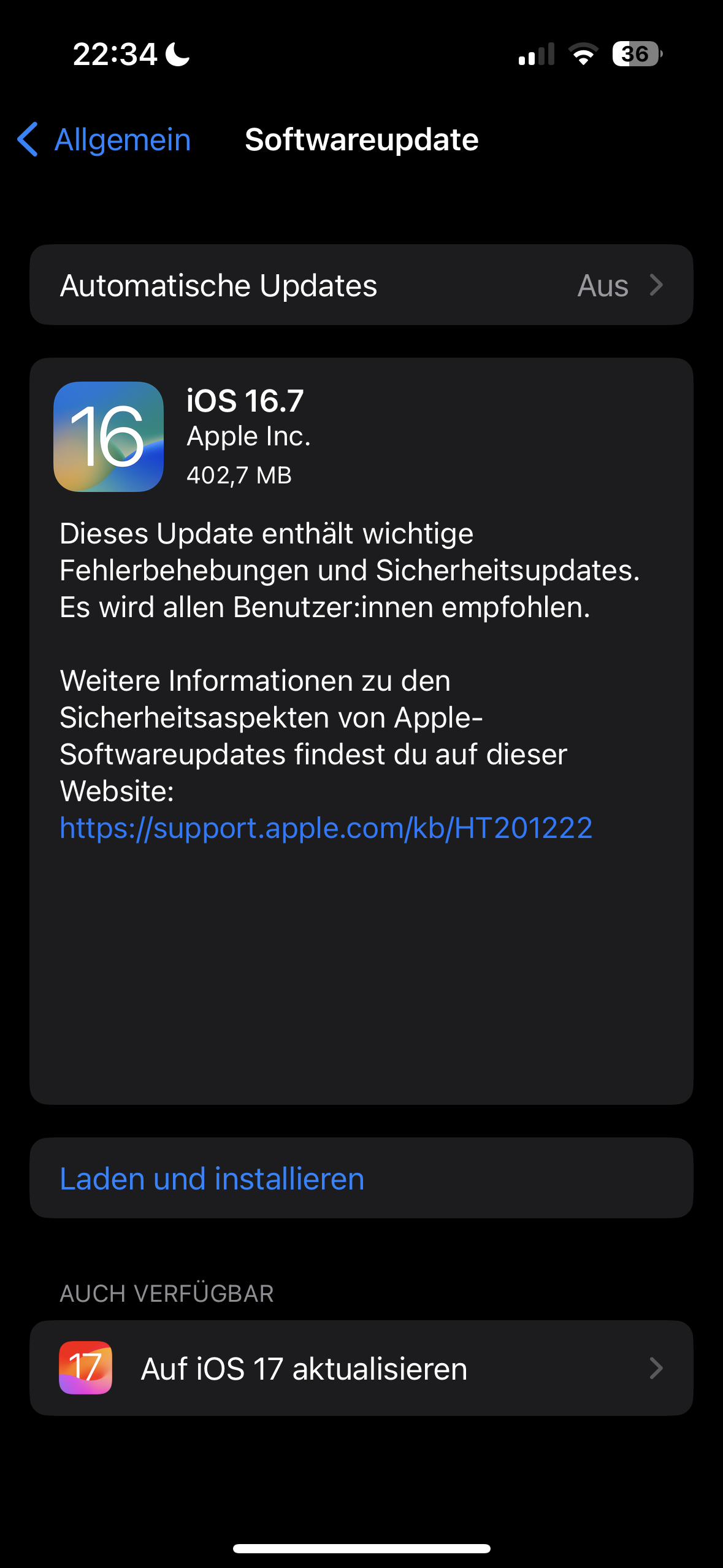 Hat jemand beispielsweise das iOS 16 Update (von iOS 15 aus) lange rausgezögert, und konnte daher sehen, ab wann diese Option „auch verfügbar“ nicht mehr vorhanden war sondern nur noch das iOS 16 Upgrade im Vollbild?