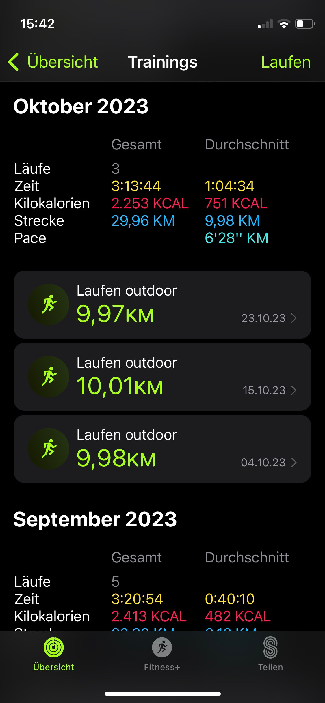 Jahresübersicht von Trainings in der Fitness-App möglich?