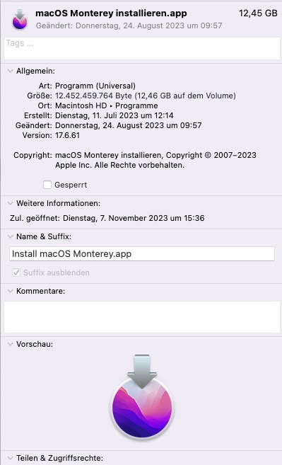 Hakelig ist nachvollziehbar 🙂, da Monterey die Hardware des 2009er MB Pro natürlich ziemlich fordert und die GPU meines Wissens nicht Metal-fähig ist.