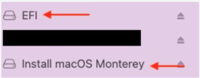 Wenn du das erledigt hast, solltest du dein 2009er MB Pro mit diesem Stick booten können; hierbei wie üblich die "option"-Taste gedrückt halten, dann "EFI-Boot" wählen und sofort danach wieder die "option"-Taste gedrückt halten und "Install macOS Monterey" auswählen...