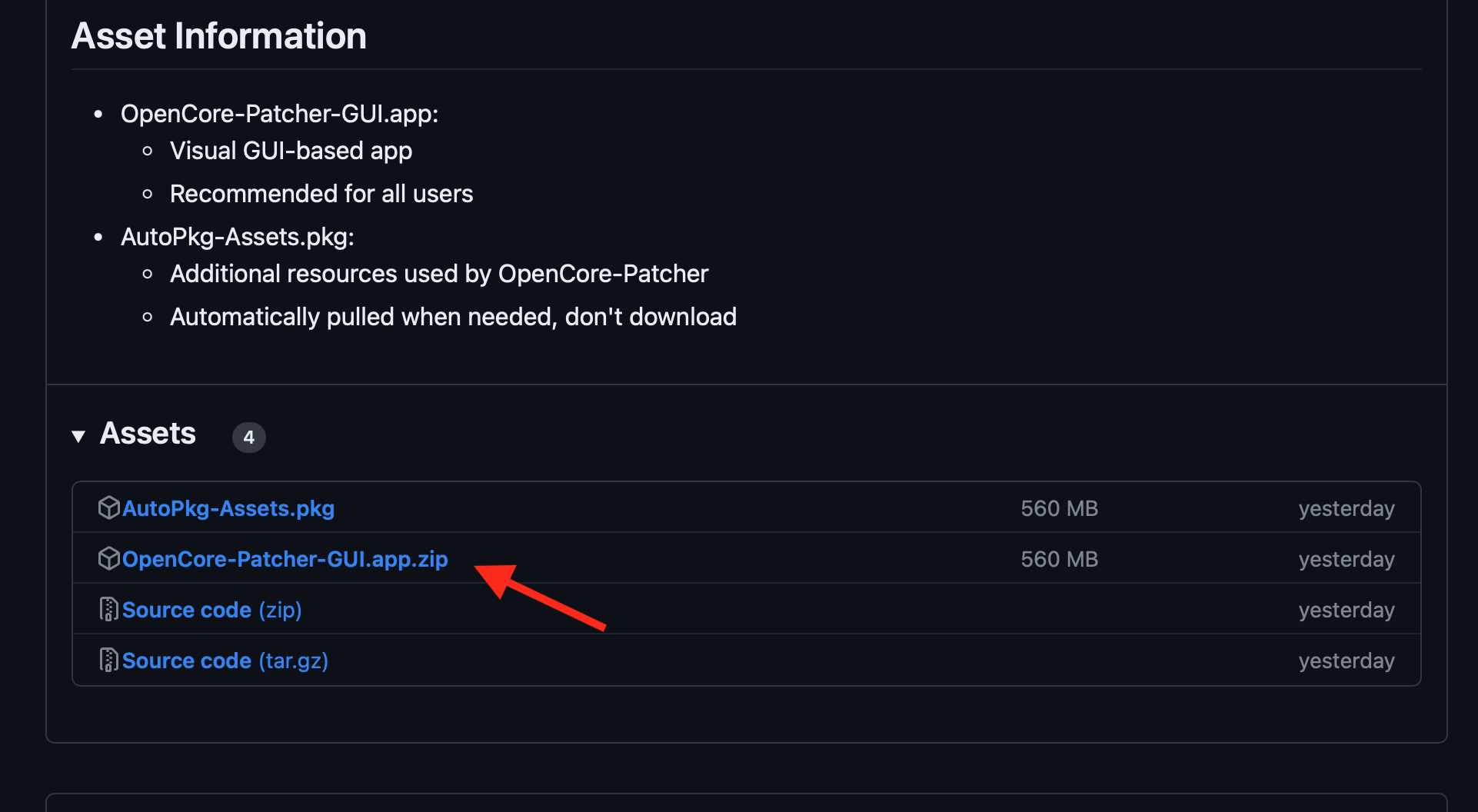 Wenn ja nur noch den "OpenCore Patcher" 'runterladen: