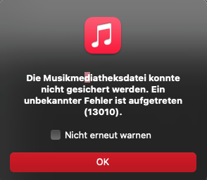 Die Musikmediatheksdatei konnte nicht gesichert werden