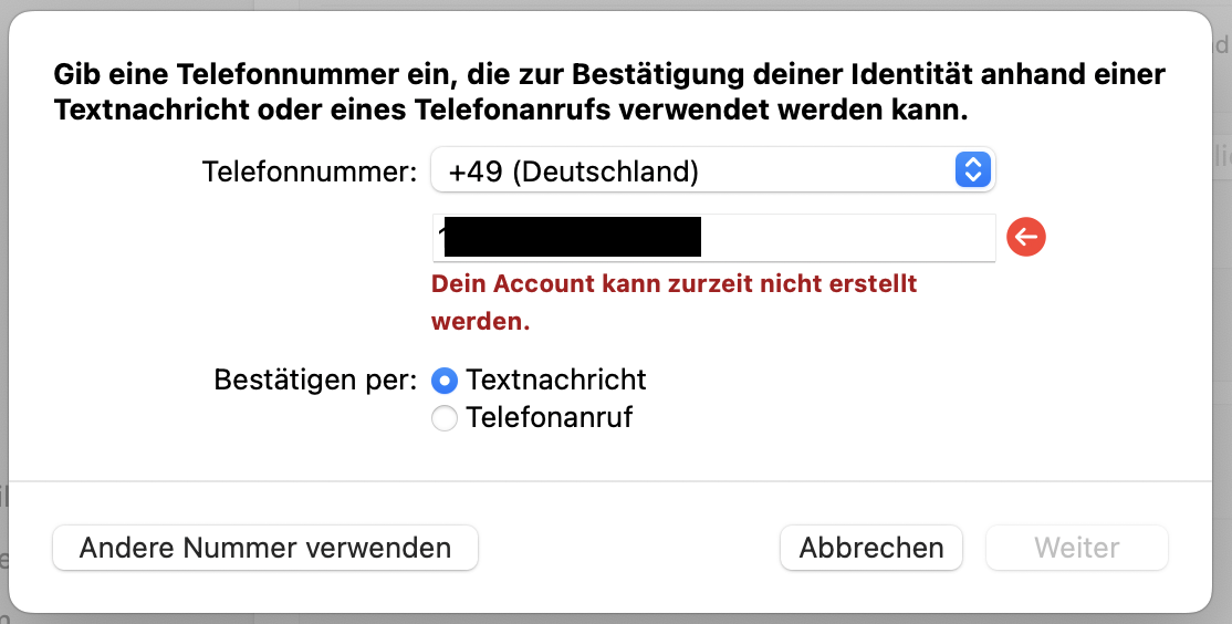 Bei der Erstellung einer Apple ID Kinderaccounts erhalte ich die Rückmeldung Es ist ein Fehler aufgetreten, versuche es später. Die Meldung kommt seit zwei Tagen.