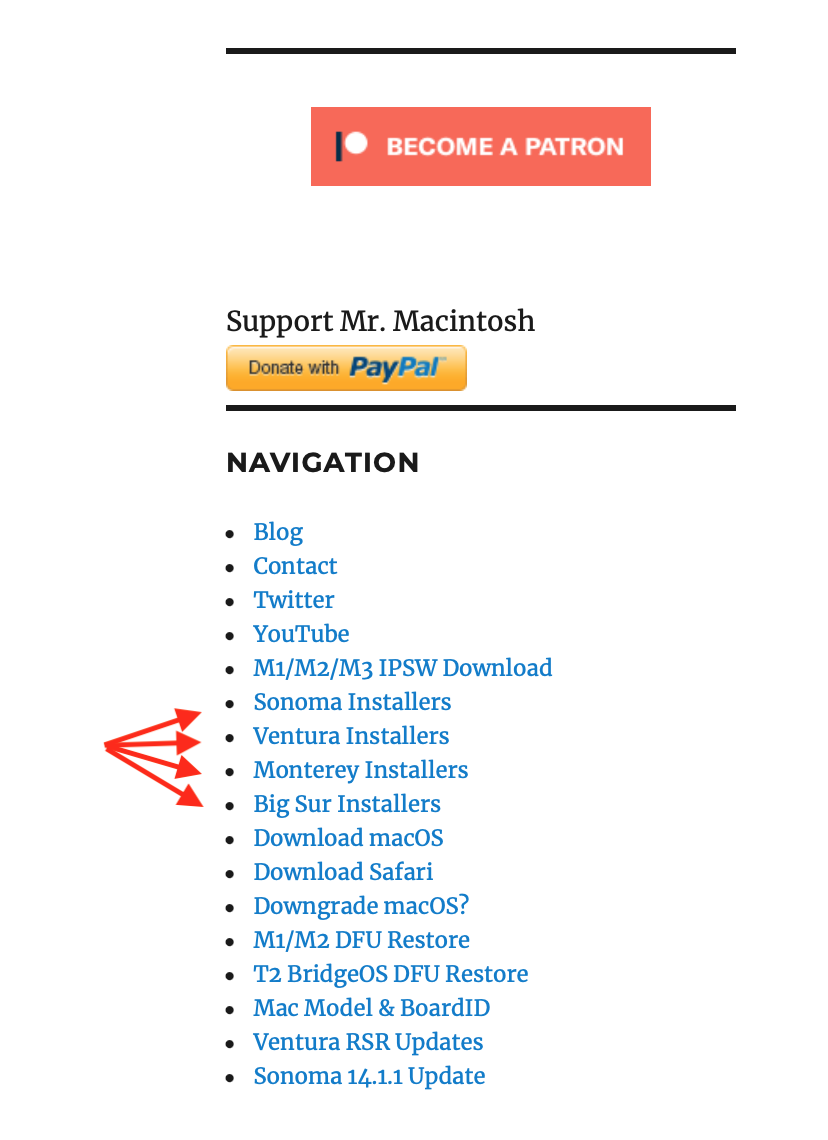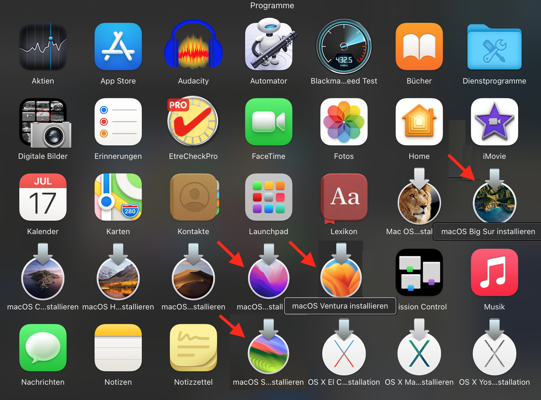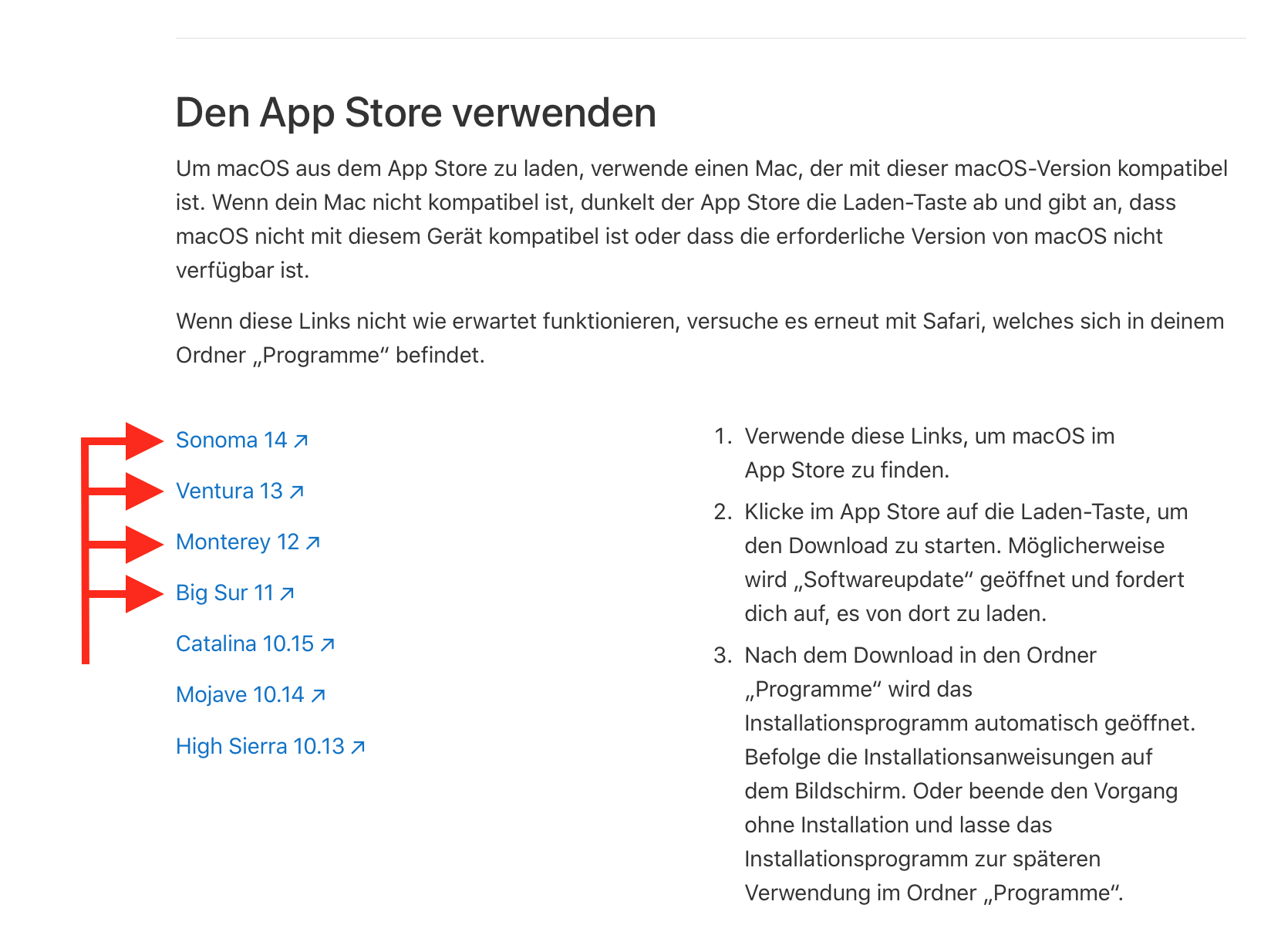 Download des gewünschten MacOS-Installers.pkg's von der absolut problemlosen web site "mrmacintosh" https://mrmacintosh.com/