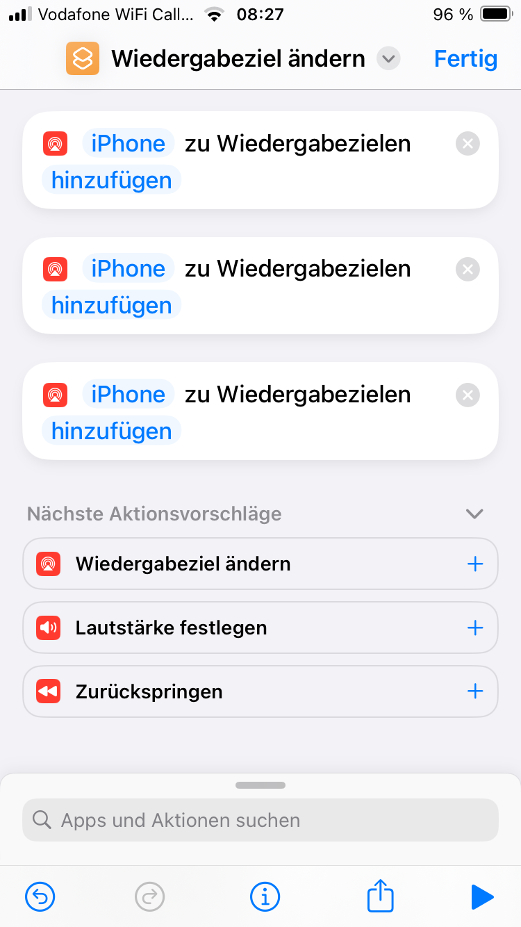 Ich könnte mir vorstellen, dass das mit einem Kurzbefehl zu bewerkstelligen ist. Erstelle dir doch mal einen KB und füge die einzelnen Wiedergabeziele als Aktion ein. An Stelle des "iPhones" entsprechend deine verfügbaren Geräte auswählen...