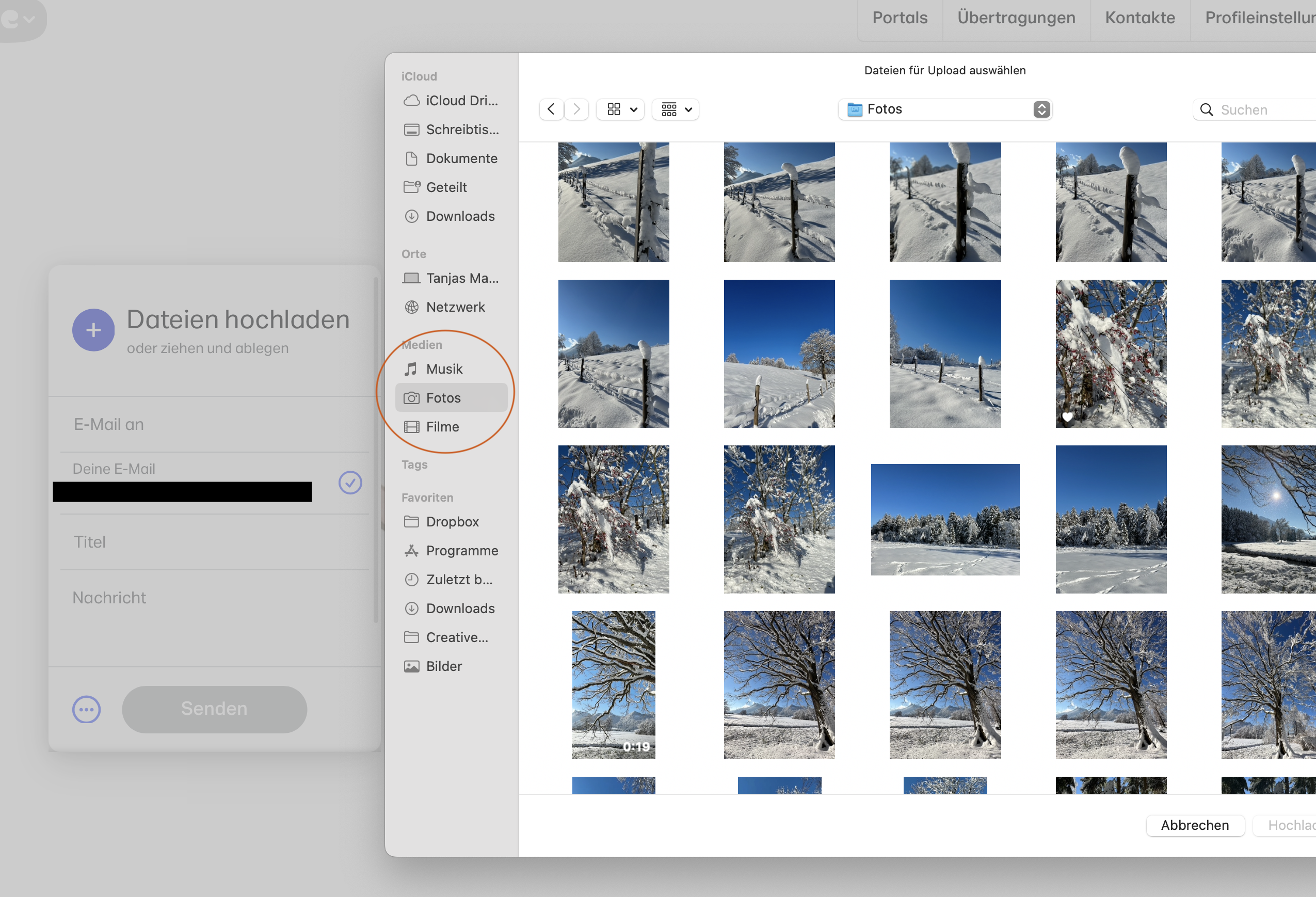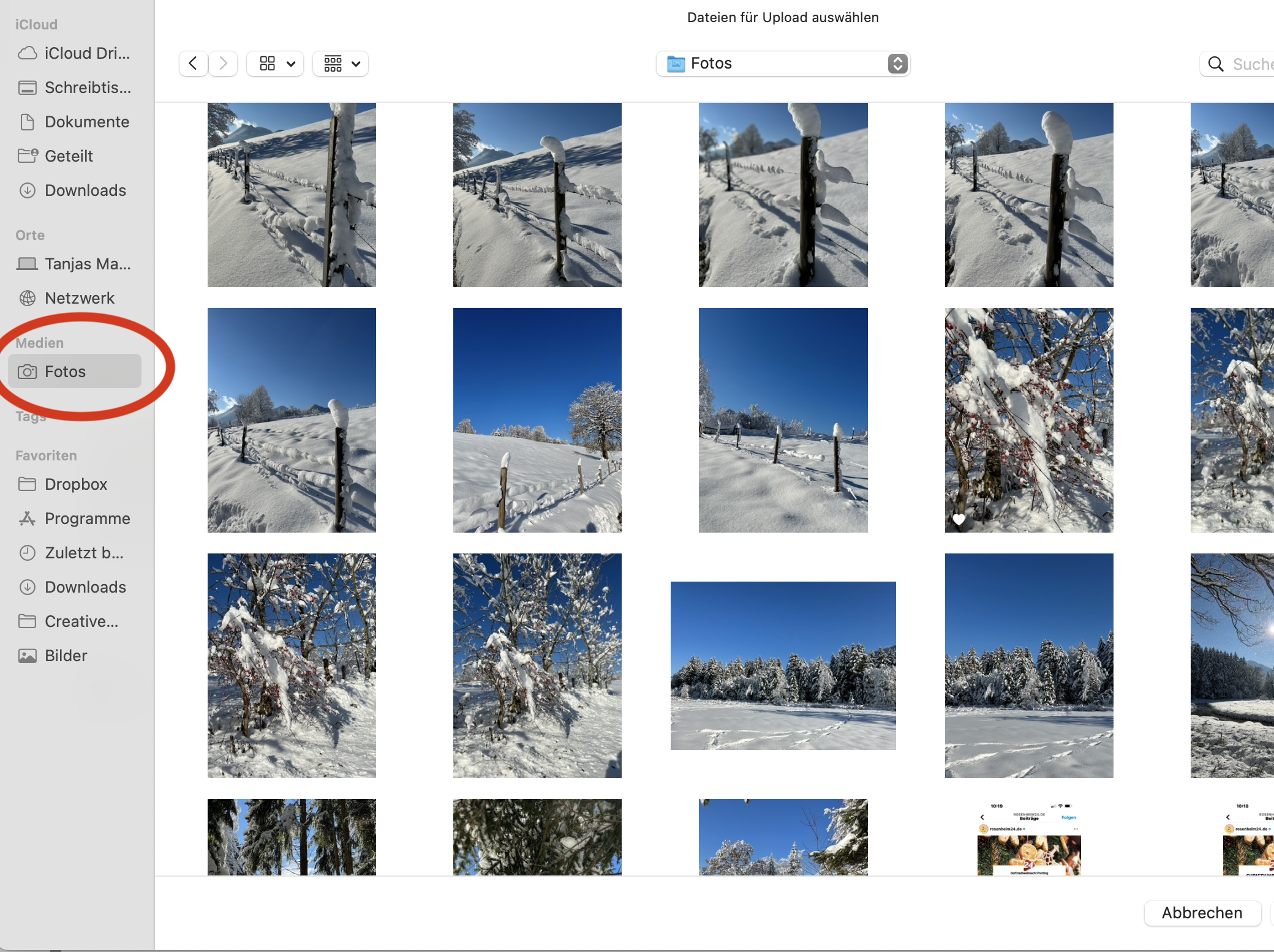 Hallo zusammen! Ich kann bei einem upload nicht mehr auf die einzelnen Alben aus meiner Foto Mediathek zugreifen. Es werden zwar alle Bilder angezeigt, aber nur komplett und nicht in Alben unterteilt, wie z.B. direkt in der Foto App. Anbei 2 Bilder. Das erste zeigt die Darstellung bei einem Upload, das zweite Bild ist die Darstellung in der Foto App, so wie ich es auch gerne bei upload haben möchte. Ich hoffe, es kann mir hier jemand weiterhelfen. Vielen DANK schon mal! (Ich habe ein Mac Book Pro 16" 2019)