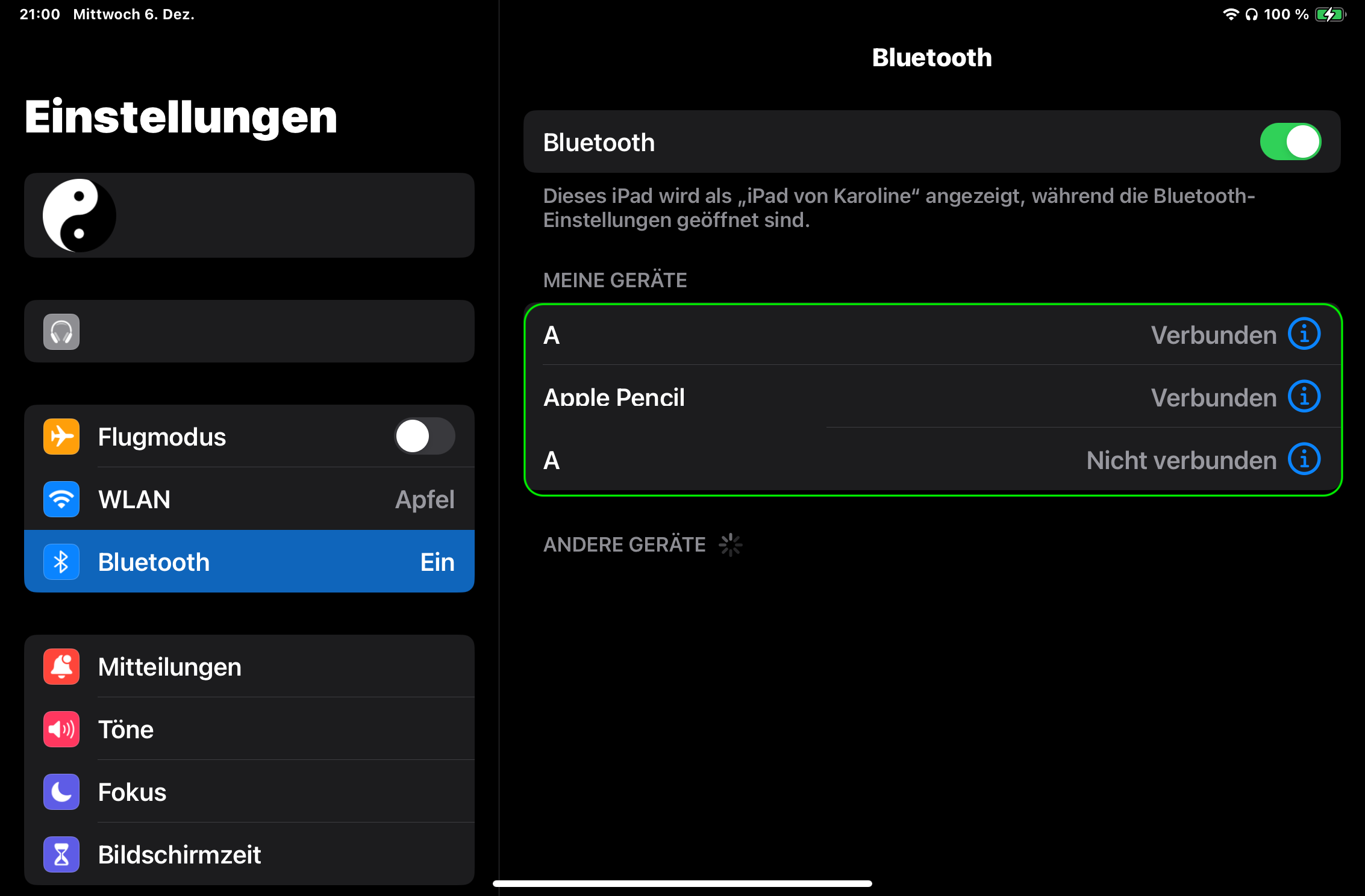 auf der rechten Seite nach, welche Geräte mit deinem iPad gekoppelt sind.