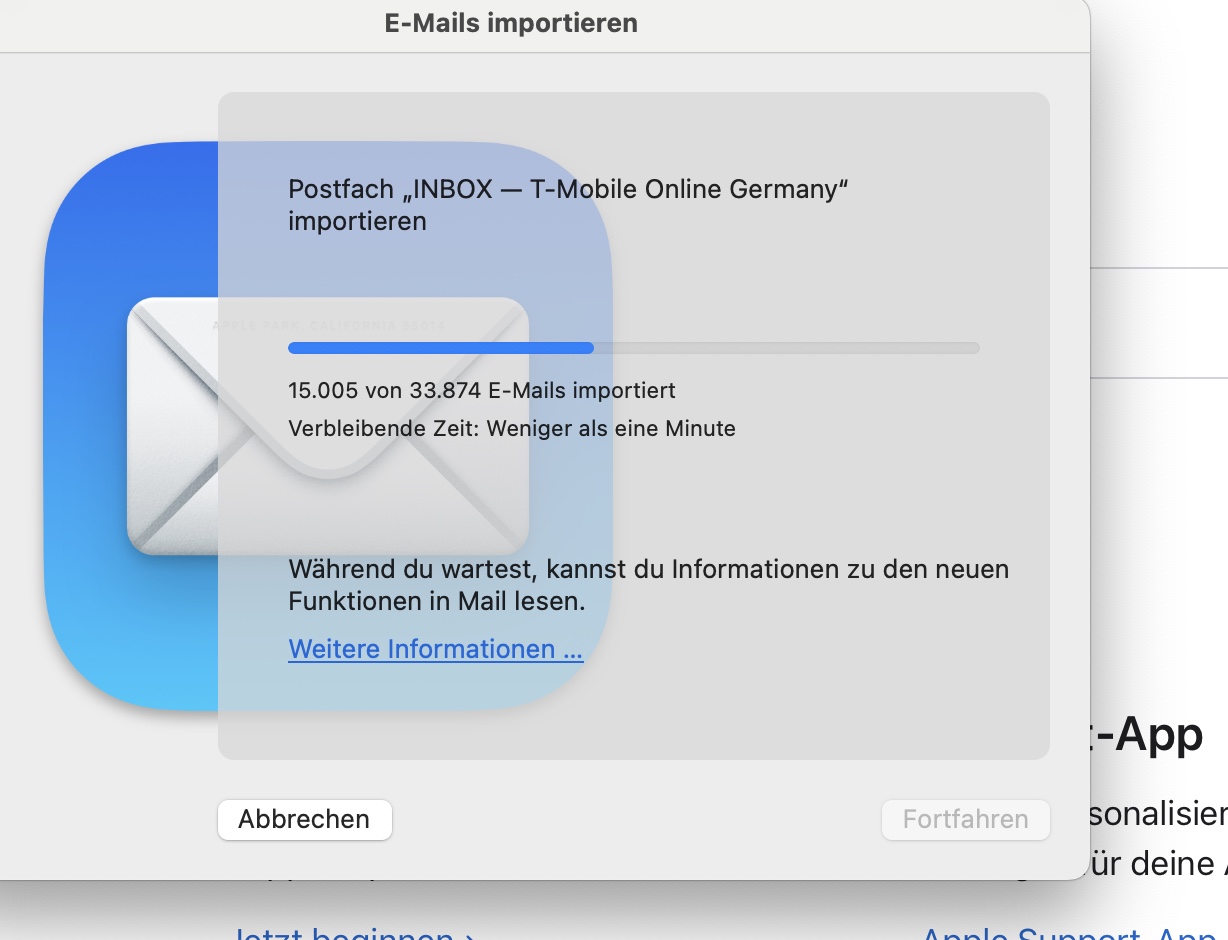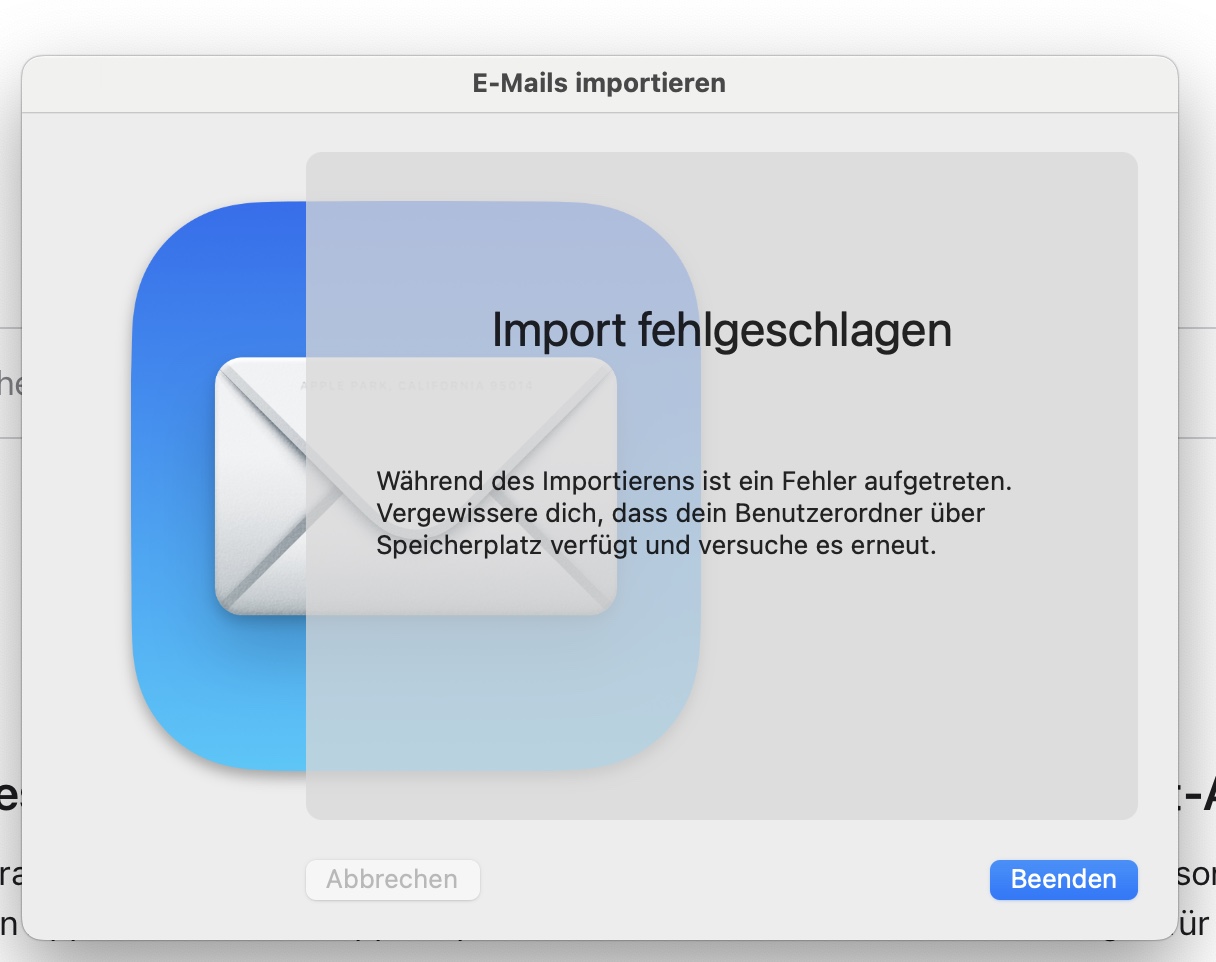 Nach Migration von Intel nach Arm-MacBookPro gelingt die Migration von Mail nicht. Endmeldung: Fehlgeschlagen.