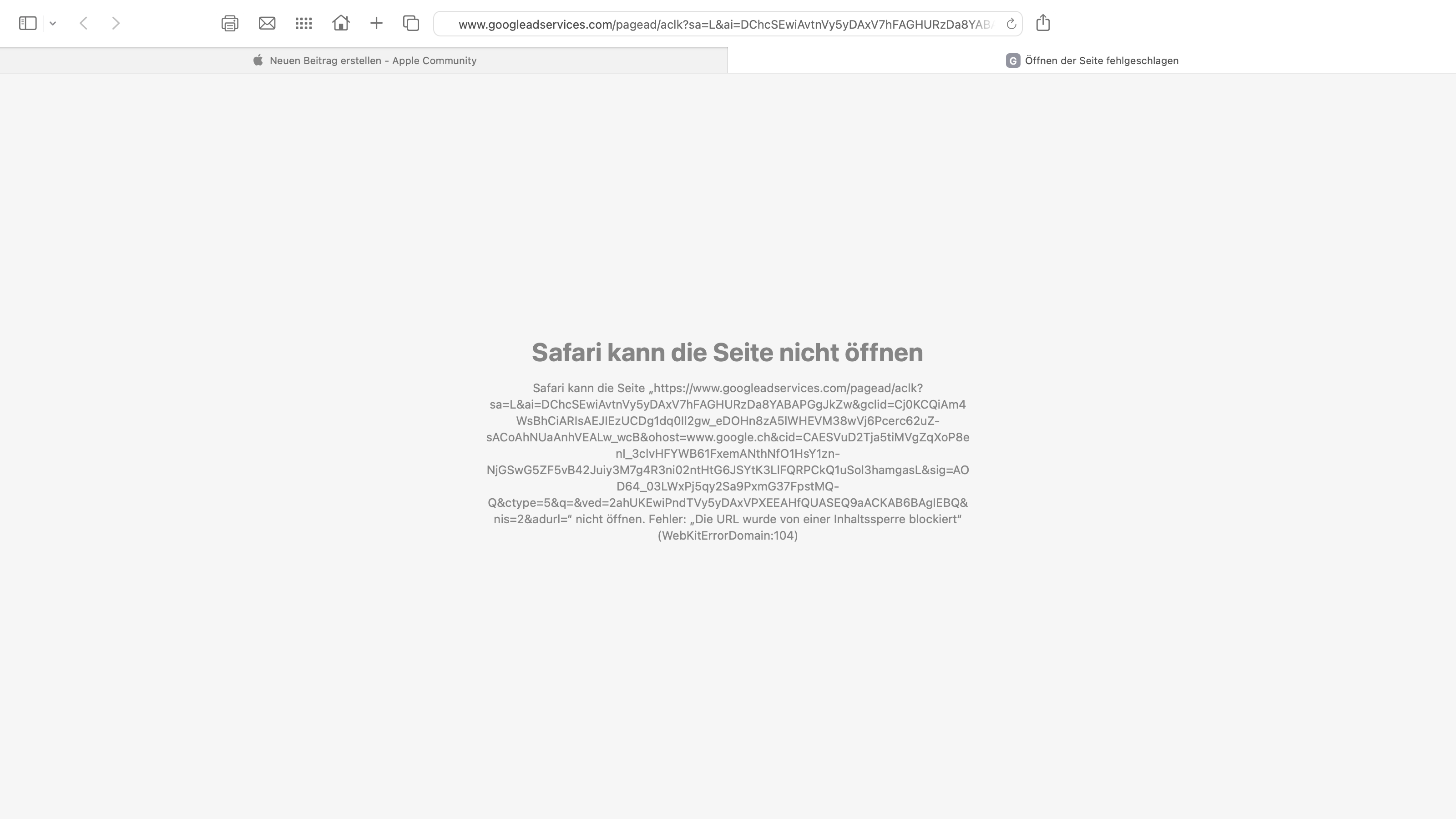 "Webkit Error domain104" bei Onlineshopping mit Safari