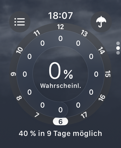 Tippt man auf die Wetterkomplikation, so wird die Uhrzeit falsch dargestellt: Statt 5 Uhr wird 17 Uhr angezeigt und umgekehrt - es scheint, als würde in der Anzeige der Tag fälschlicherweise um 12 Uhr mittags beginnen. Siehe auch begefügtes Foto. Im Netz gibt es übrigens mehrere Meldungen zum gleichen Fehler