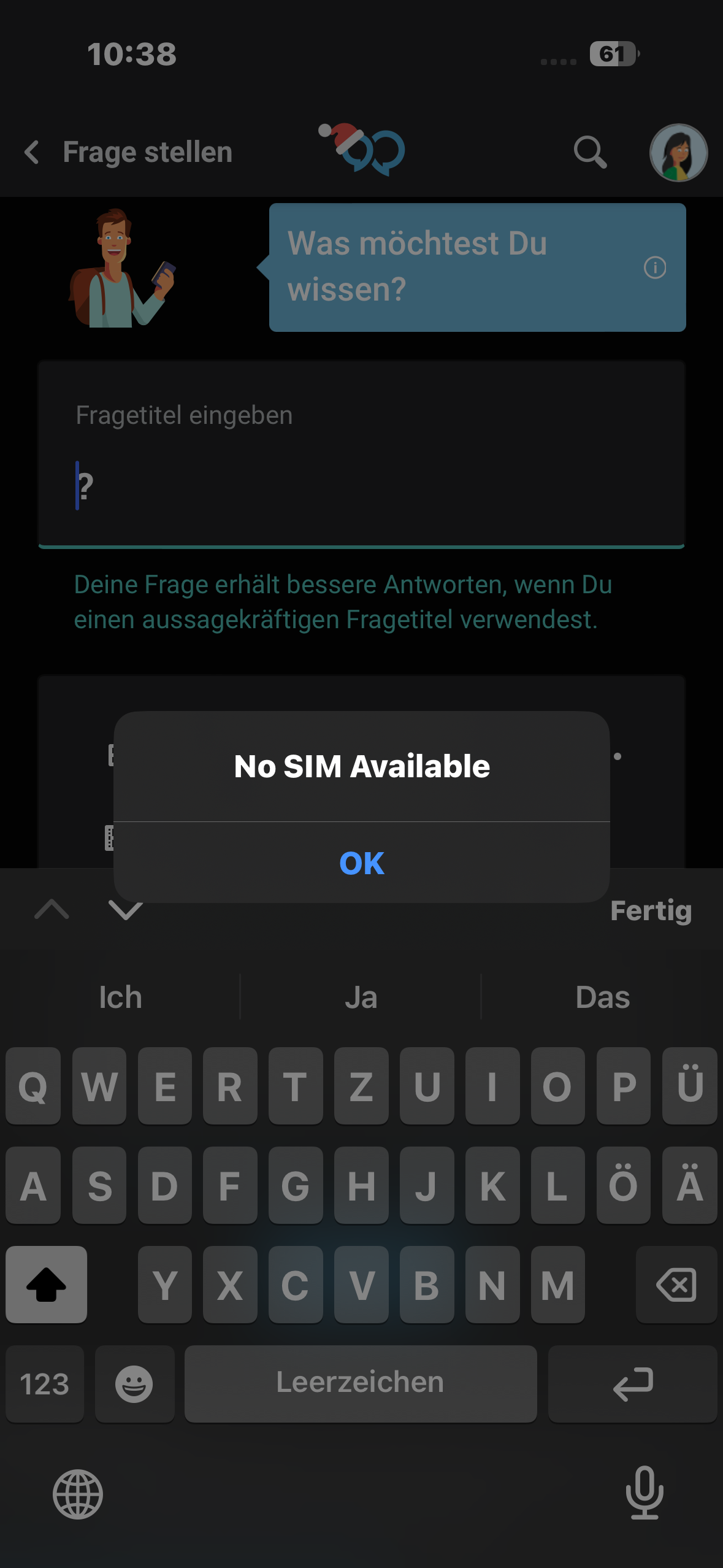 Wenn die Meldung zur SIM-Karte weiterhin angezeigt wird, kontaktiere den Apple Support.