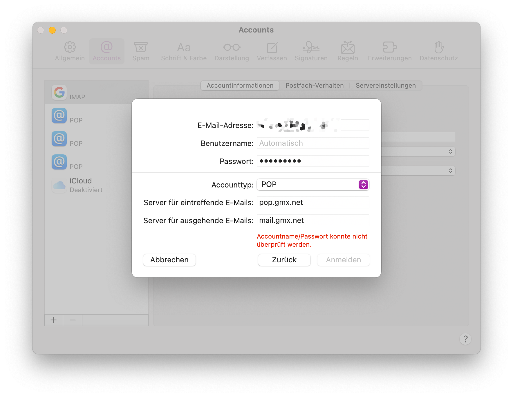 Das Mail Programm erstellt automatisch einen POP Account für meine gmx mail adresse !