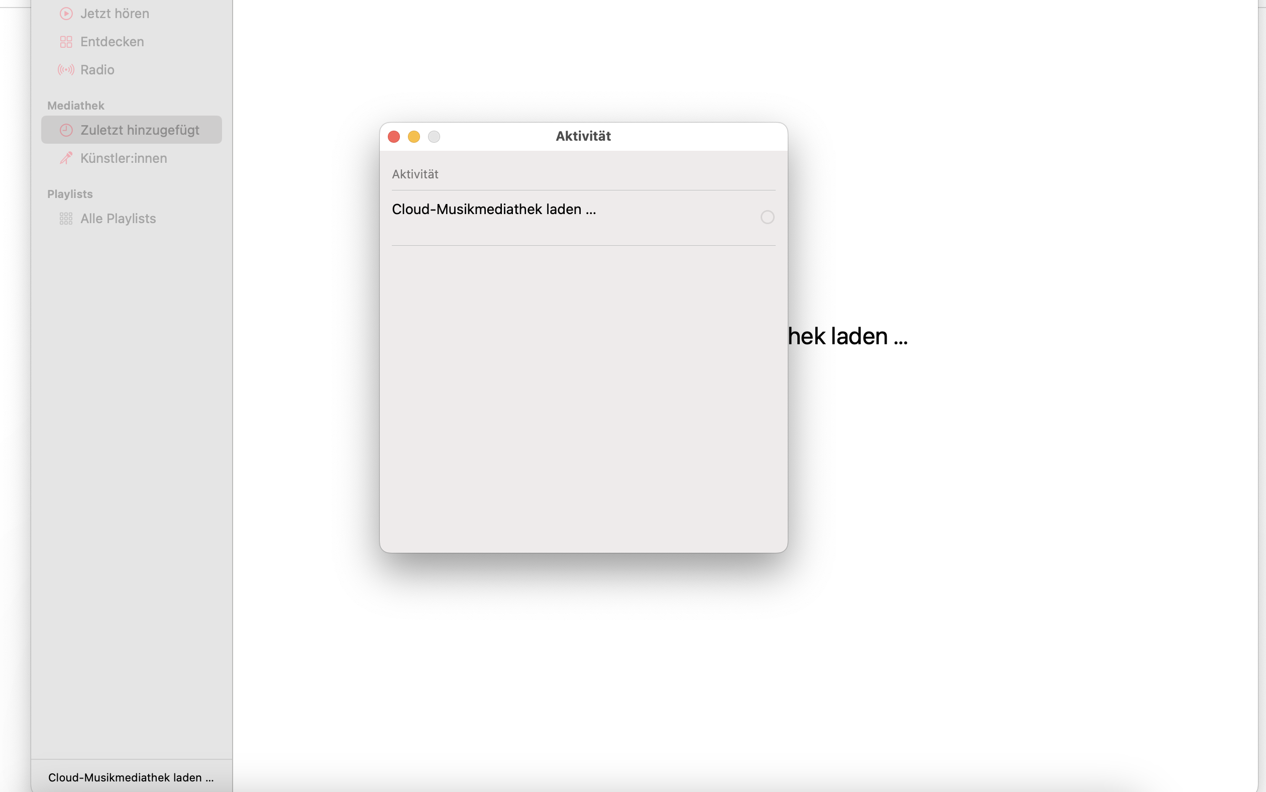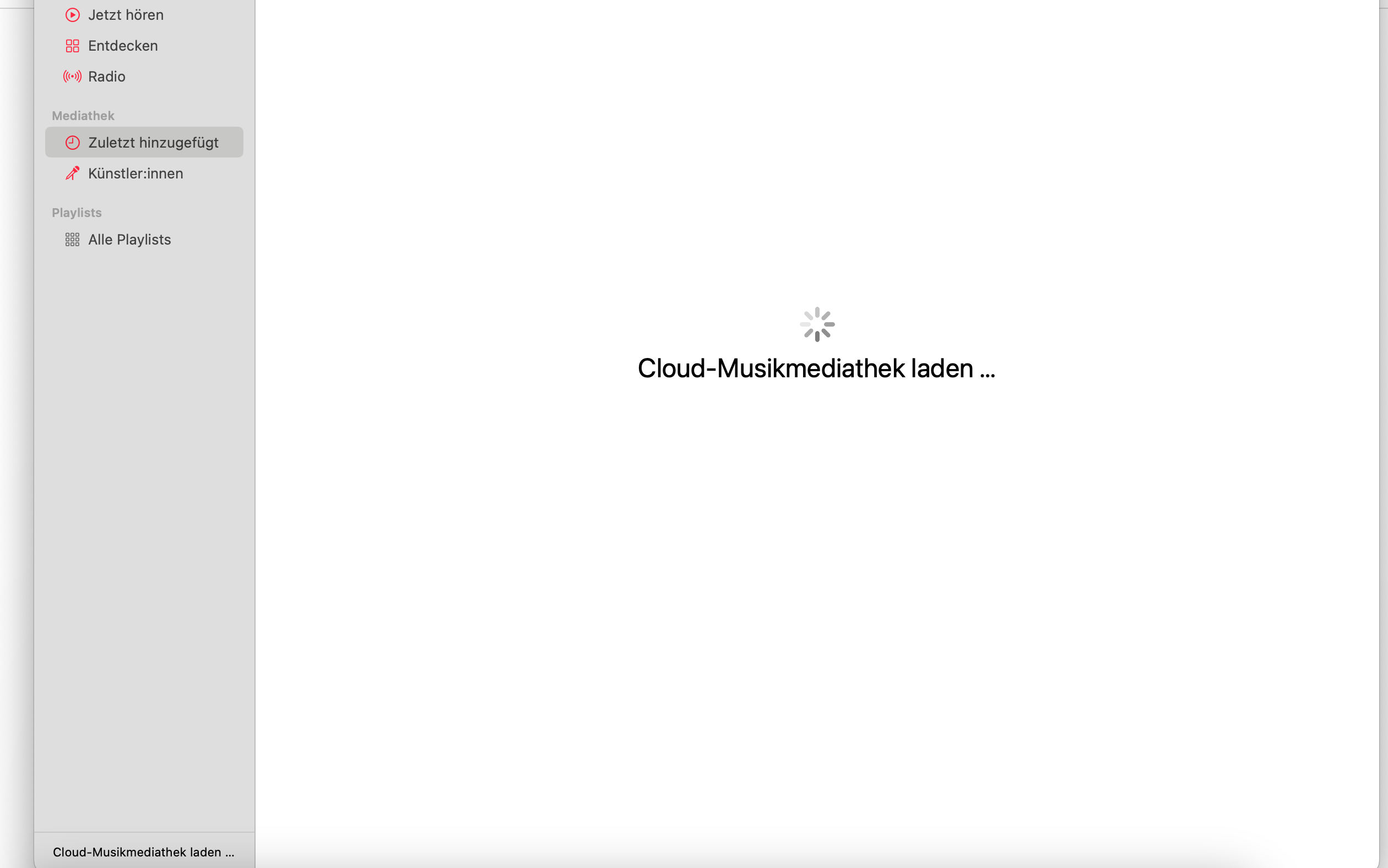 Ich habe meinen Mac bereits neu gestartet, mich komplett abgemeldet (sowie von der Musikapp als auch iCloud als Ganzes), den Mac re-autorisiert, den Mac auf die Werkeinstellung gesetzt (Und somit alle Dateien auf dem Mac gelöscht) und die Cache Dateien der Musikapp gelöscht. Nichts funktioniert.