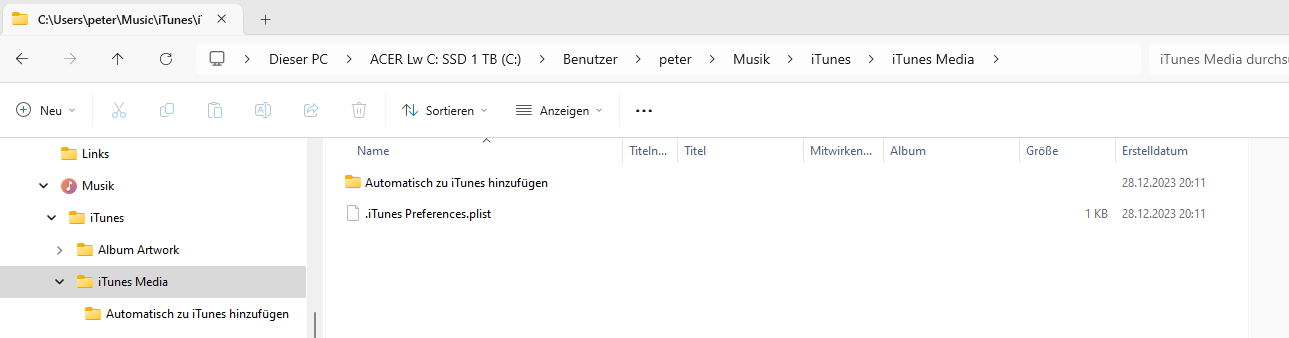 «C:/Benutzer/Peter/Musik/iTunes/iTunes Media» (Bild 1). Weil die Kiste im Hintergrund