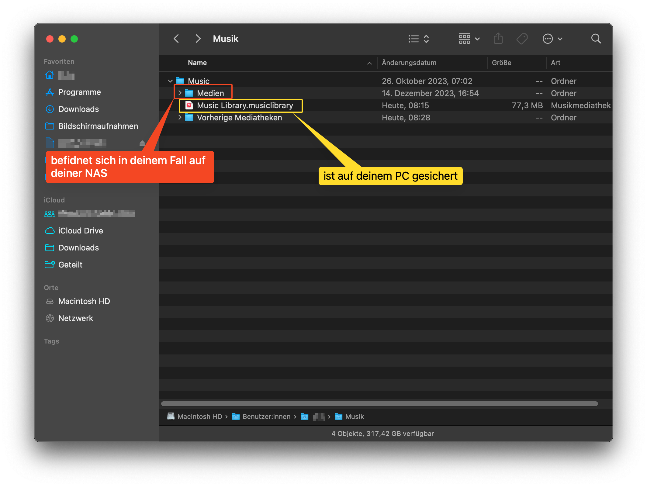von Kopien der Mediendaten im Ordner «iTunes Media». Das habe ich bereits am