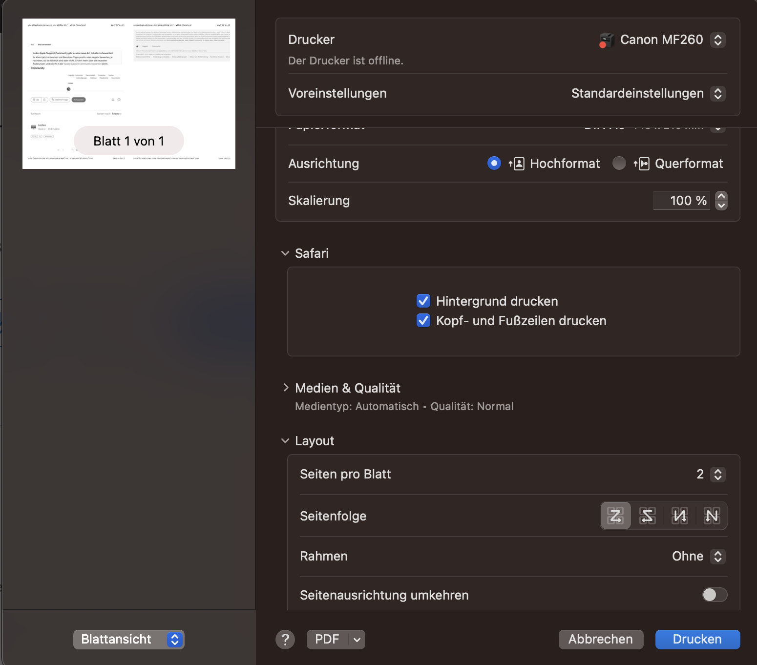- Wenn alles wie gewünscht aussieht, drucke das Dokument aus. Stelle sicher, dass du die Druckereinstellungen entsprechend auf DinA5 und doppelseitig (falls gewünscht) eingestellt hast.