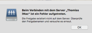 Damit fing alles an problematisch zu werden und ich habe neue Freigaben für die interne HD des 27"er erteilt und dabei falsche Zugriffsrechte verteilt bzw. meinen Nutzernamen wohl durch System ersetzt und zugleich als Eigentümer festgelegt.