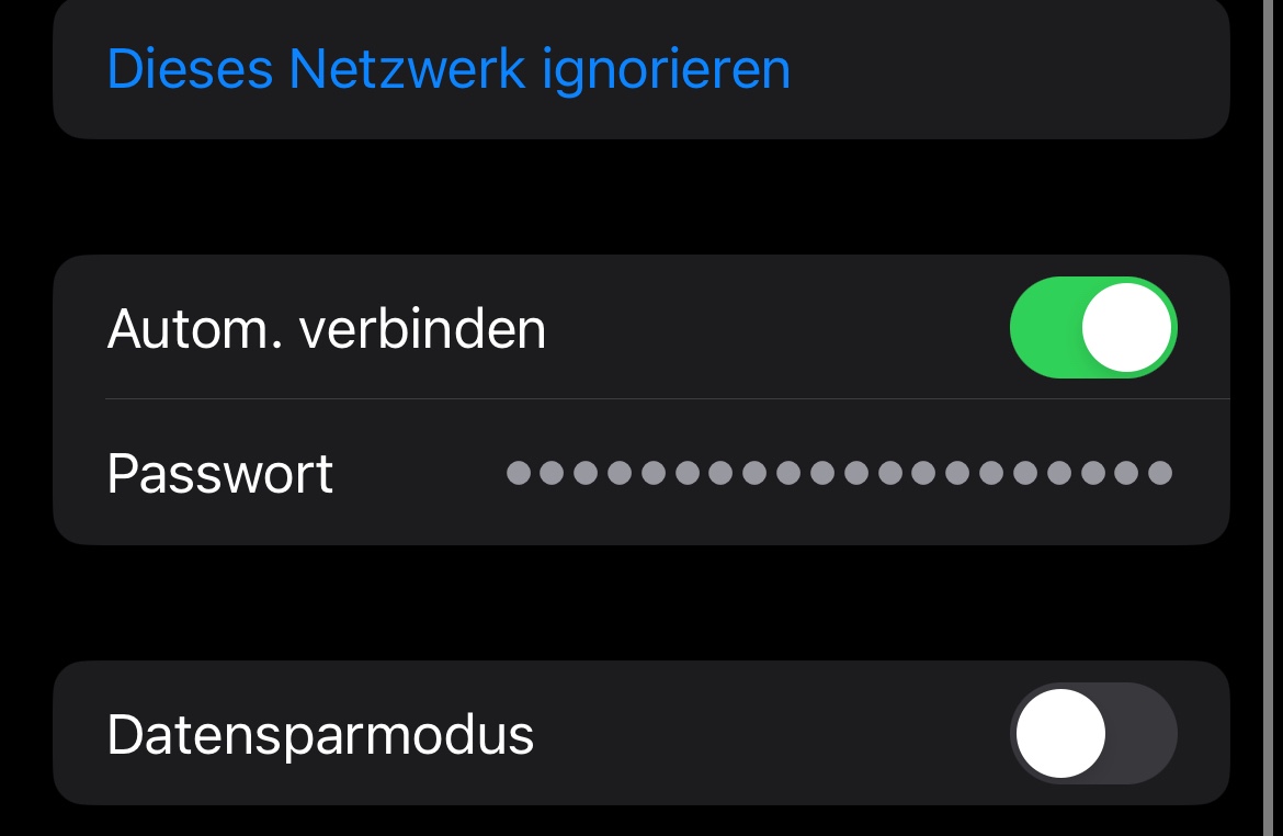 Hallo, ich habe mir das neue iPhone 15 pro max gekauft. Im laufe meines Alltages ist mir jedoch etwas aufgefallen. Bei meinem alten iPhone 12 Pro kann ich mir das Passwort für eine bereits verbundenes WLAN anzeigen lassen, indem ich auf Passwort tippe und mit Face ID oder Pin entsperre. Bei meinem neuen 15 pro max ist dieser Button jedoch nicht da. Gibt es eine Möglichkeit diesen wieder zu bekommen oder ist das mit einem update bewusst entfernt worden? Bitte um Hilfe, Vielen Danke und ein schönes neues Jahr