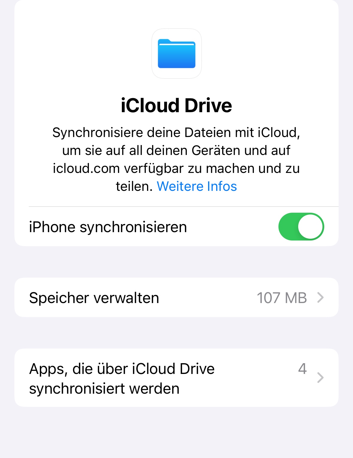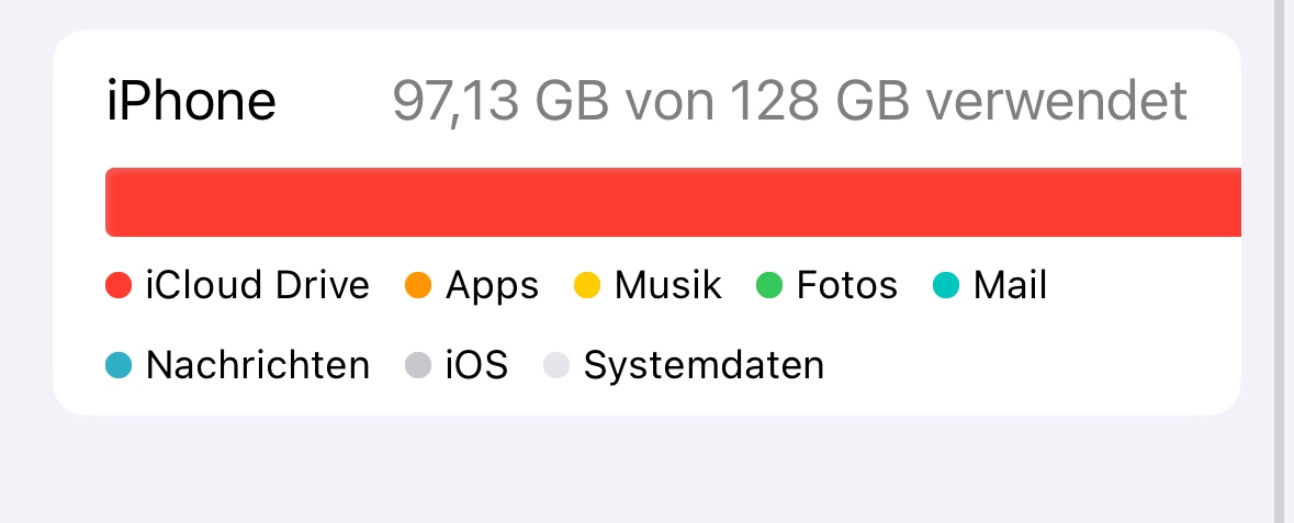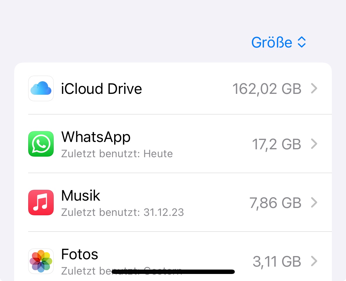 Schaue ich mir den verwendeten Speicherplatz auf meinem Gerät an steht dort, dass iCloud Drive 162 GB benötigt ??