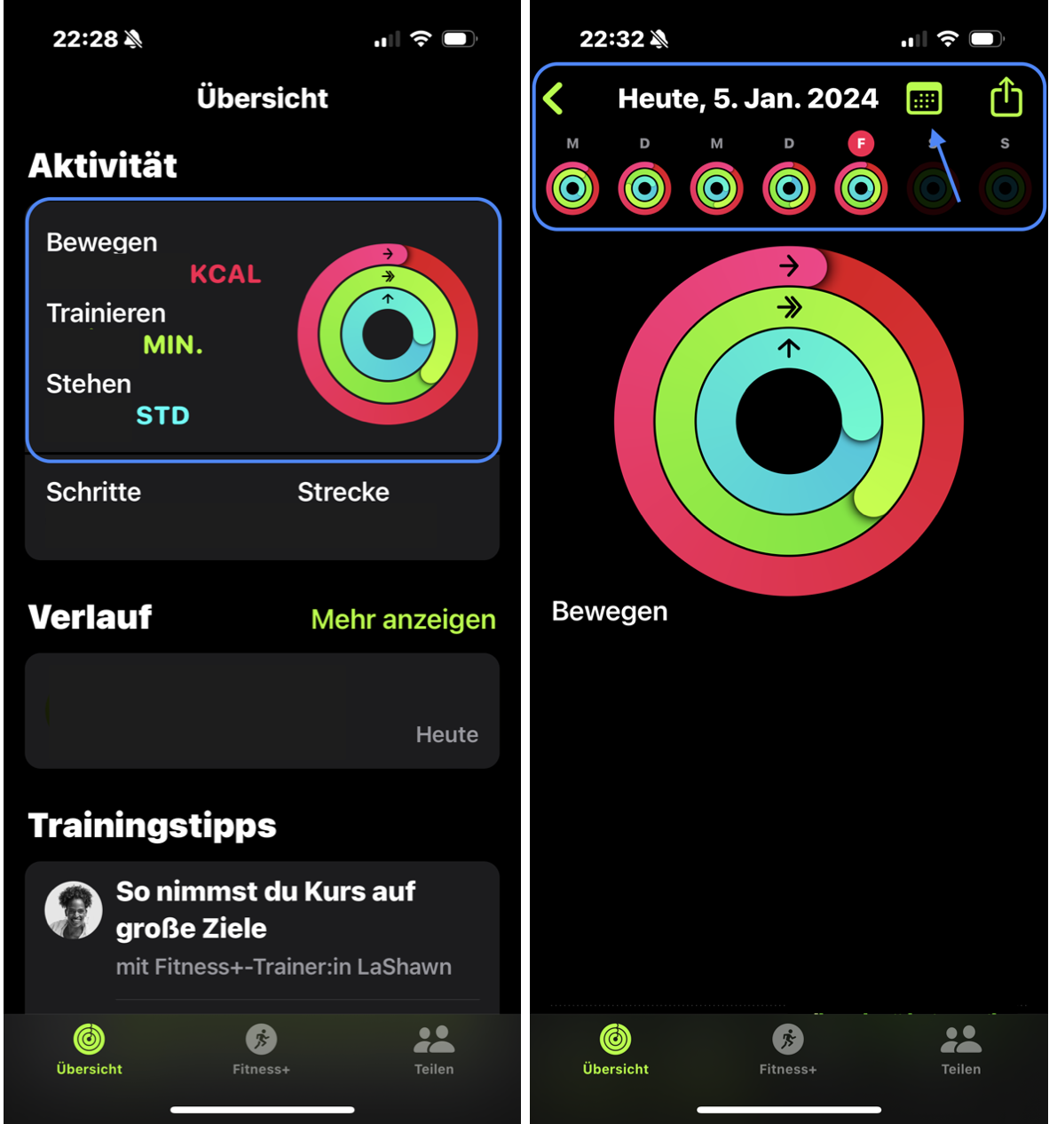 Es kann einige Zeit dauern, bis die Fitnessdaten zwischen der Apple Watch und dem iPhone synchronisiert sind. Stelle sicher, dass beide Geräte in der Nähe voneinander sind und eine aktive Internetverbindung haben.