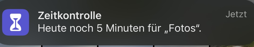 ich habe das eben selbst einmal bei mir ausprobiert und habe durchaus eine Benachrichtigung fünf Minuten vor der Zeitkontrolle erhalten. Diese habe ich auch anschließend noch in der Mitteilungszentrale gesehen.