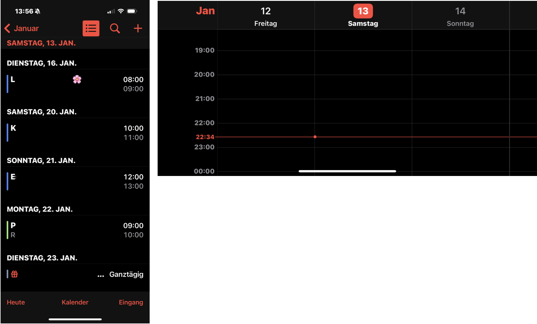 Bei der Nutzung von Apps (z. B. die Kalender-App) hast du die Möglichkeit, deine Termine im Hoch- oder Querformat anzeigen zu lassen.