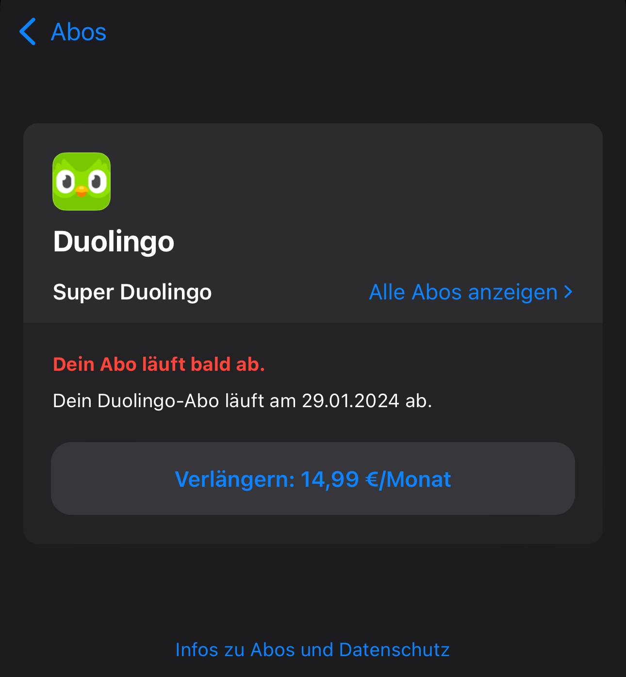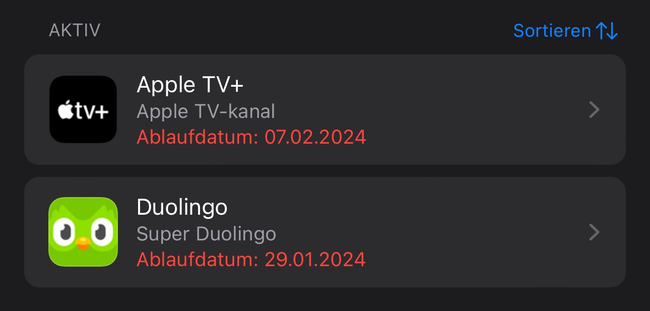 Hallo, undzwar habe ich vor kurzem versucht zwei Käufe oder Abos zu stornieren jedoch wird mir dies angezeigt