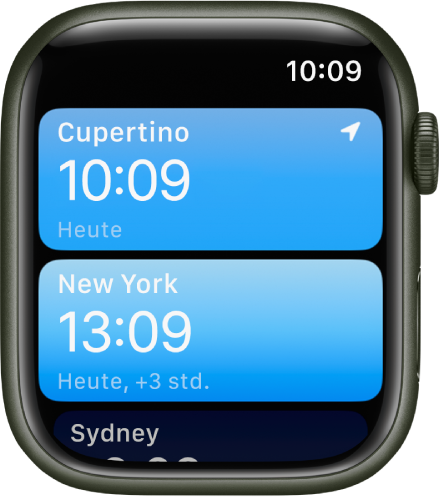 auf deiner Apple Watch kannst du die Zeit in verschiedenen Städten auf der ganzen Welt anzeigen.