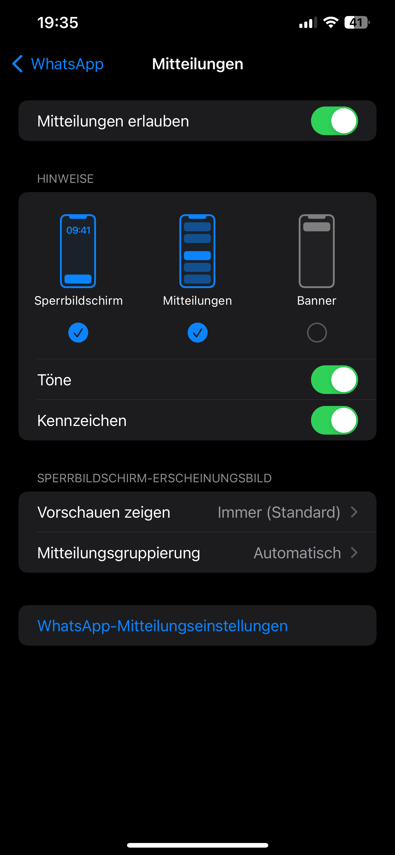 Öffne WhatsApp und gehe zu "Einstellungen" > "Mitteilungen". Stelle sicher, dass die Option "Immer anzeigen" für Benachrichtigungen aktiviert ist.