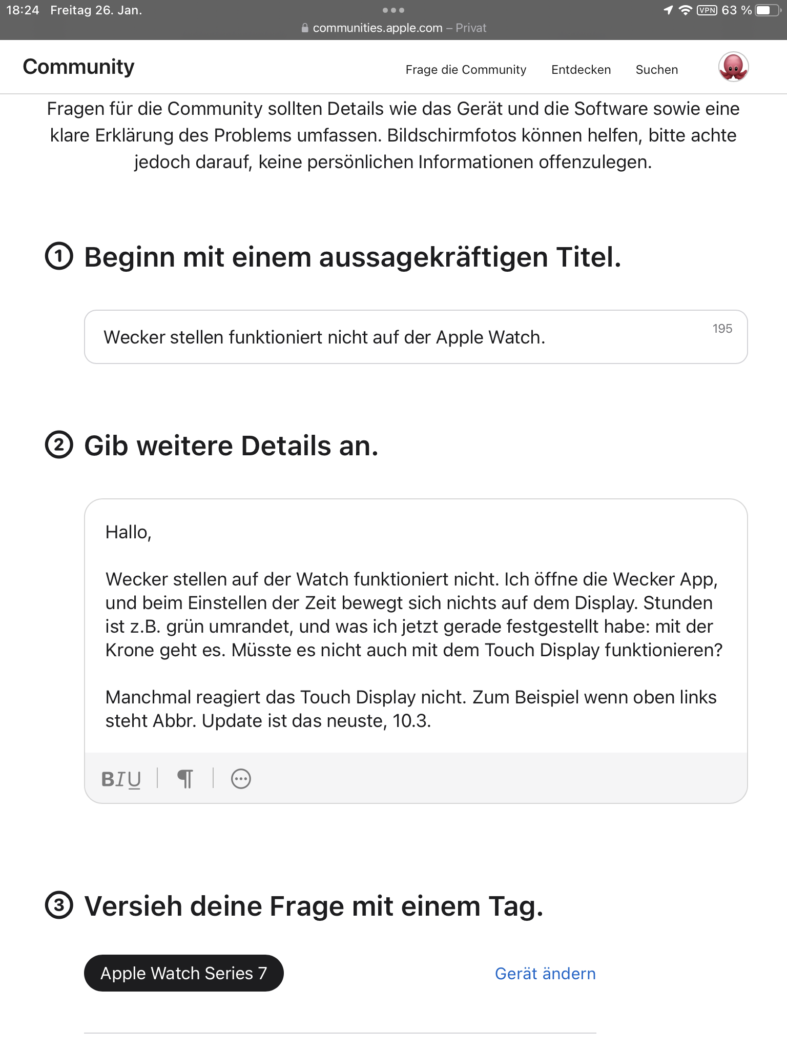 Und manchmal streikt auch das Touch Display, z. B. wenn oben rechts in der Ecke Abbr. steht. Und dann konnte ich den Beitrag auch gar nicht posten, von meinem iPad aus.