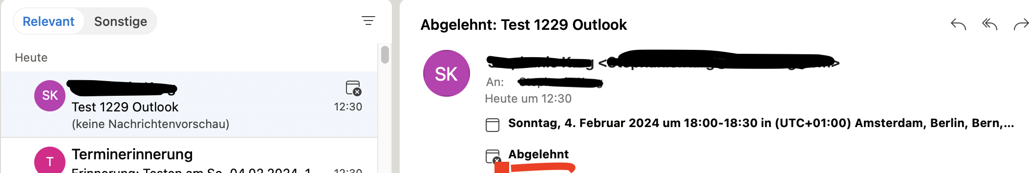 Einladungen und/oder Antworten auf Einladungen aus Apple Calender und Outlook App kommen beim Windows Empfänger nicht an