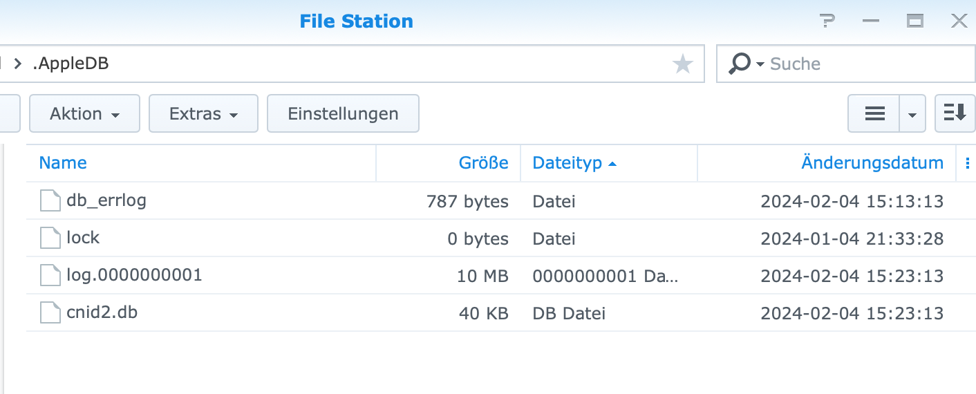 Ich sehe sogar, dass der Ordner .AppleDB und einige weitere Dateien angelegt wurden, siehe Screenshot.